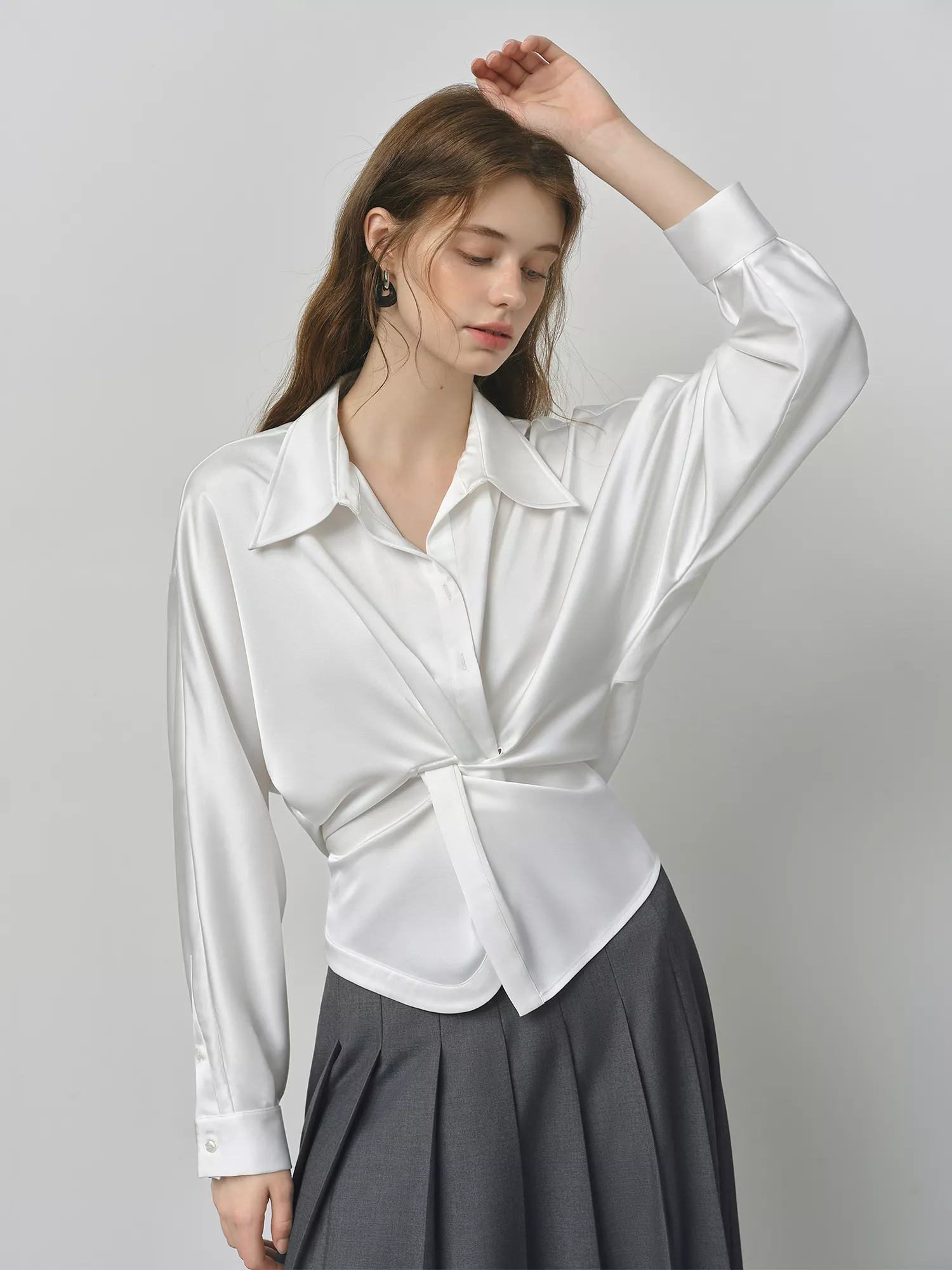 French Minimalist V-Neck Long Sleeve Twist Shirt – Casual Loose Fit