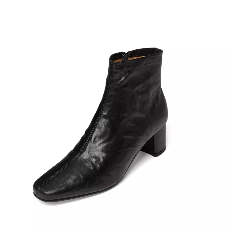 Genuine Leather Ankle Boots – Square Toe Chunky Heel Office Shoes