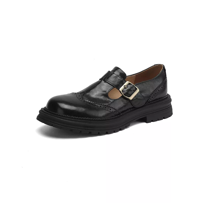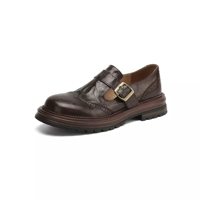 What truly sets these shoes apart is their refined handmade touch and the elegant buckle strap, which not only enhances the fit but adds a subtle vintage charm. Available in versatile shades of black and brown, these loafers are a wardrobe essential that will never go out of style.