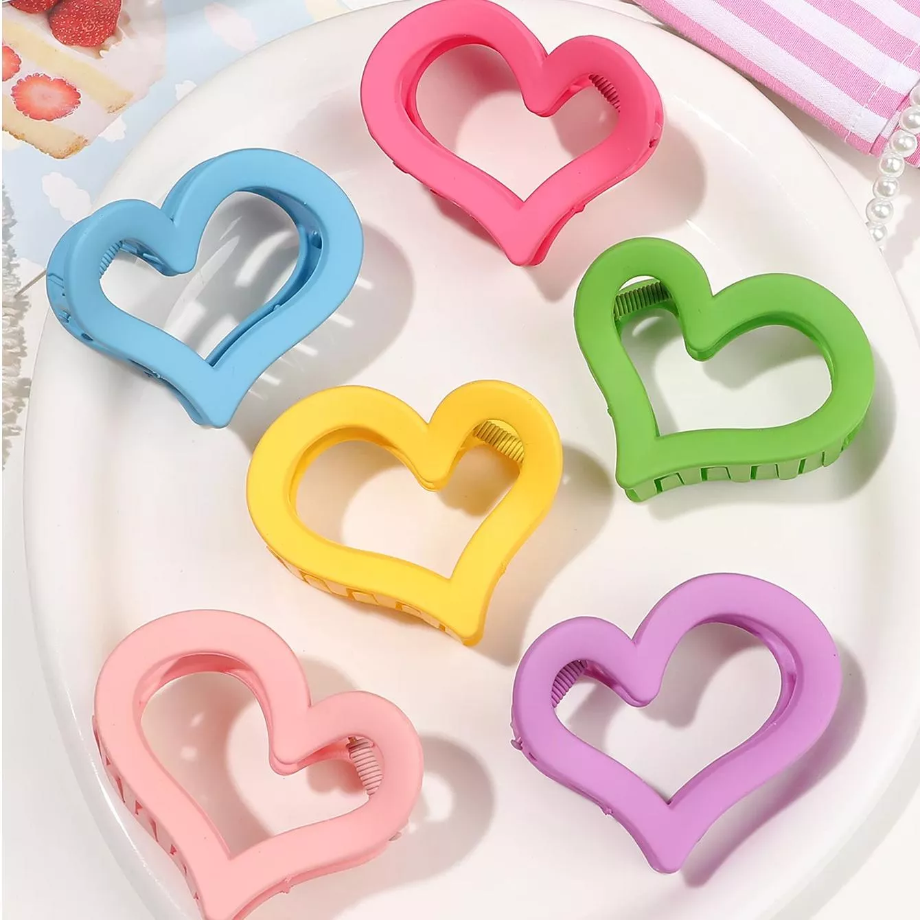 6 Pcs Colorful Heart-Shaped Matte Hair Claw Clips