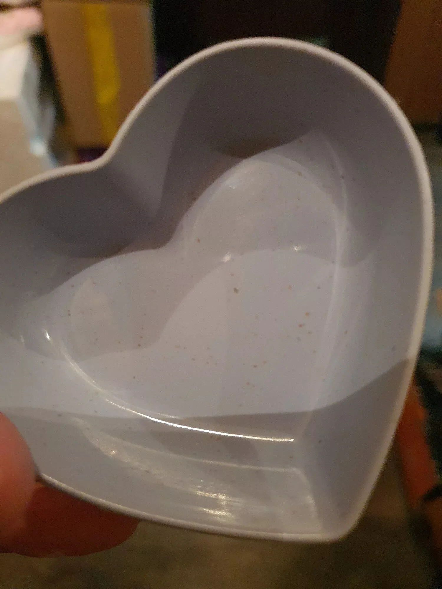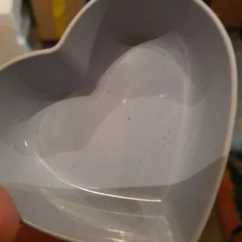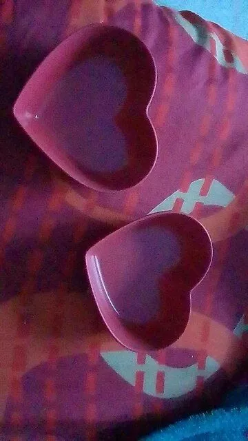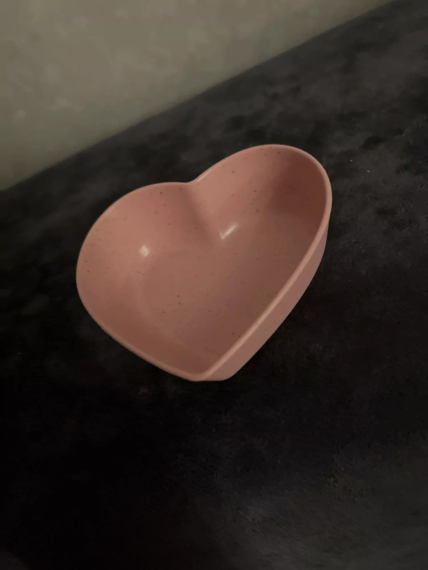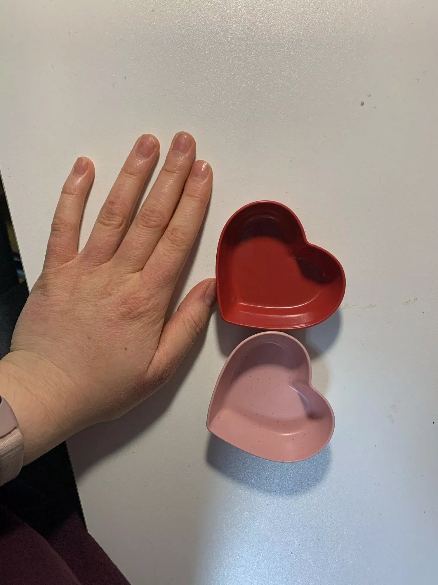 The cutest plate! Very comfortable, stable, roomy (M & M's 45g bag will mix perfectly), I think I will order a couple of different things!! These little heart bowls are so pretty. My cats eat fancy feast and they are the right size for a serving of food, my cats get fed 4-5 times a day, I just stick them in dishwasher and they come completely clean and i use sanitizer rinse cycle..