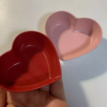 these heart-shaped seasoning dishes are fantastic. the design is not only cute but also very practical. made from wheat straw plastic, they are durable and eco-friendly. the size is ideal for various seasonings, sauces, and condiments. they clean up easily and stack well in my cabinets, saving space. i love using them for family meals and parties, as they add a touch of charm to the table. the heart shape is a delightful feature that my guests always notice and compliment. these dishes have quickly become a favorite in my kitchen. highly recommend to anyone looking for a stylish and functional addition to their dining ware.