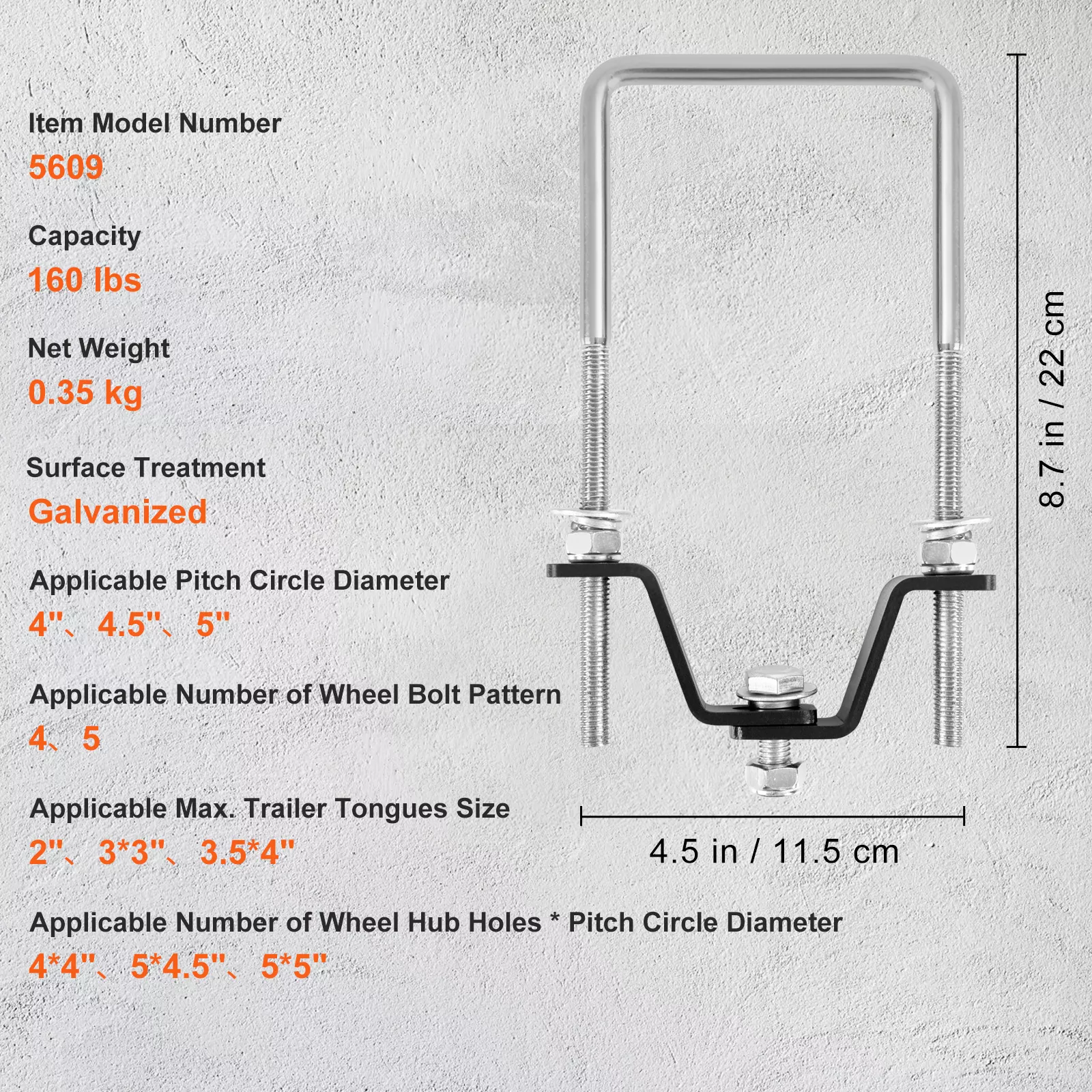 When you’re out on the road or water, having a dependable spare tire is essential—and now you can carry it with ease and peace of mind. This heavy-duty U-bolt spare tire carrier is designed to give you unmatched durability, stability, and compatibility with a wide range of trailer setups. Made from rugged carbon steel and finished with a galvanized coating, it stands strong against rust, corrosion, and the elements, making it a must-have for every trailer owner.