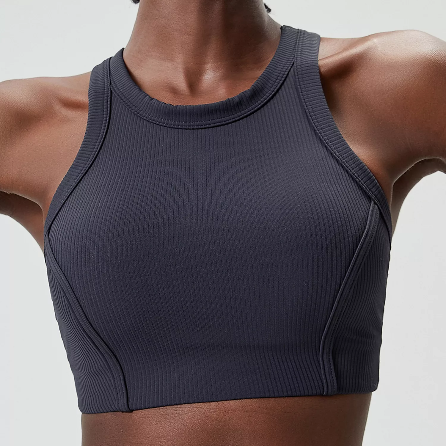Take your workouts to the next level with this ultra-comfortable, high-impact yoga bra. Designed for the modern, active woman, this ribbed crop top blends form and function seamlessly. Whether you’re flowing through yoga poses, powering through a gym session, or heading out for a run, this versatile piece gives you the support and freedom to move with confidence. With its chic round neck and body-hugging fit, it doubles as a sleek athleisure staple you can wear beyond the gym.