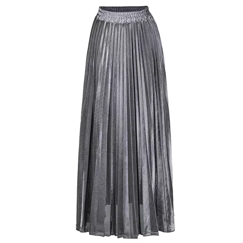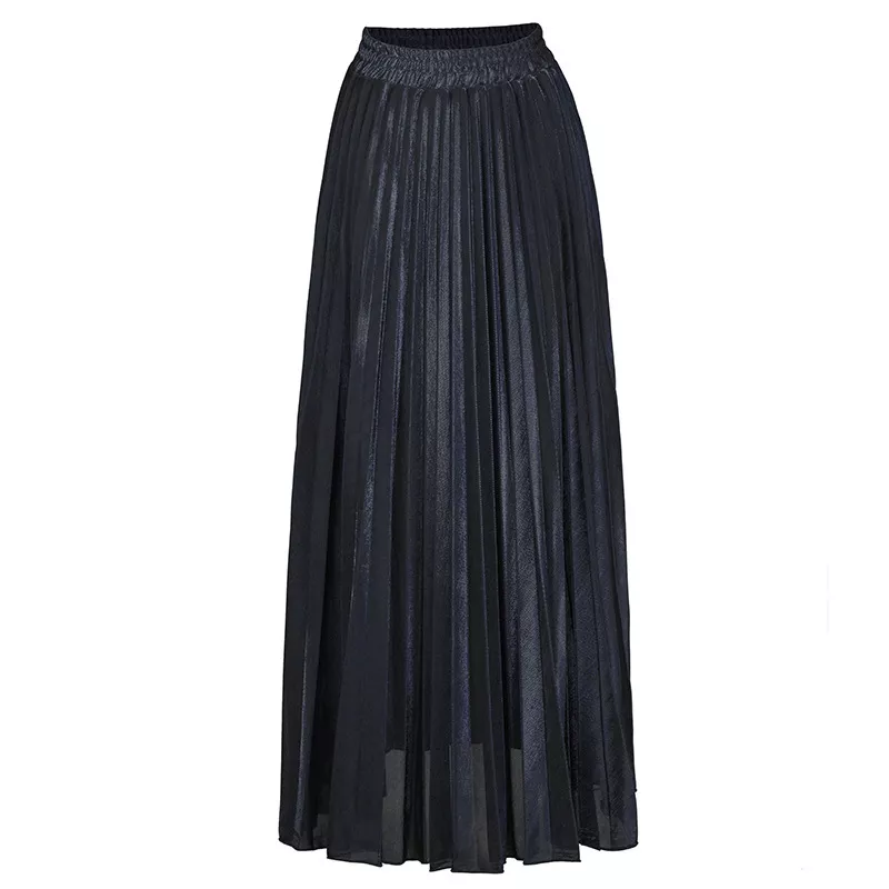 Step out in style with this stunning high waist pleated maxi skirt that brings a perfect blend of modern fashion and timeless elegance. Crafted with a metallic sheen fabric, this skirt catches the light beautifully, making it an eye-catching choice for spring, summer, and beyond. The large swing design flows gracefully with every movement, creating a flattering silhouette that enhances your natural curves while offering comfort and freedom.