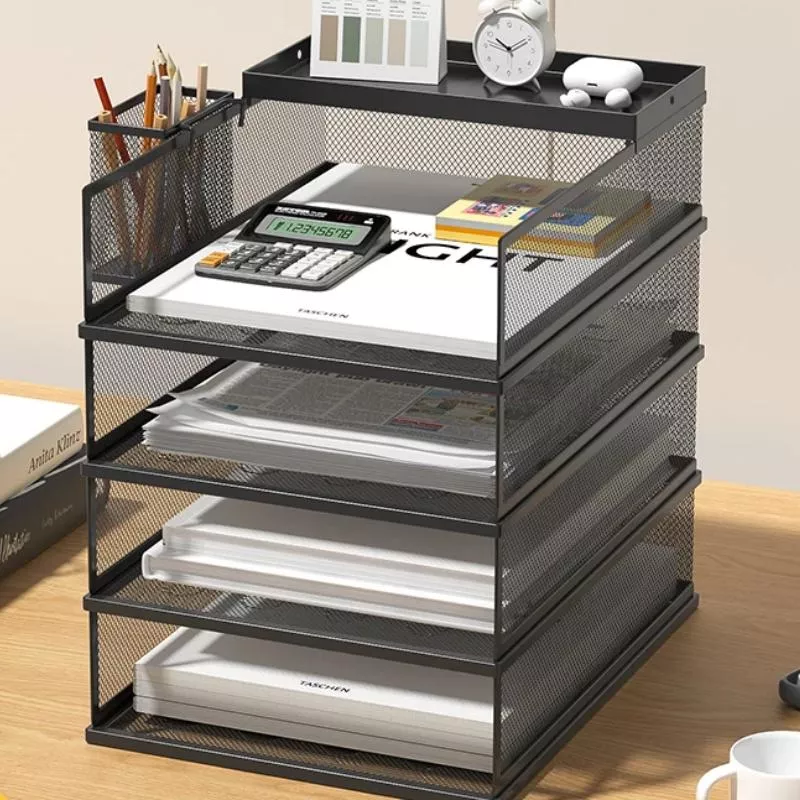 Metal Mesh Desktop File Organizer – Vertical Multi-Layer Storage Rack