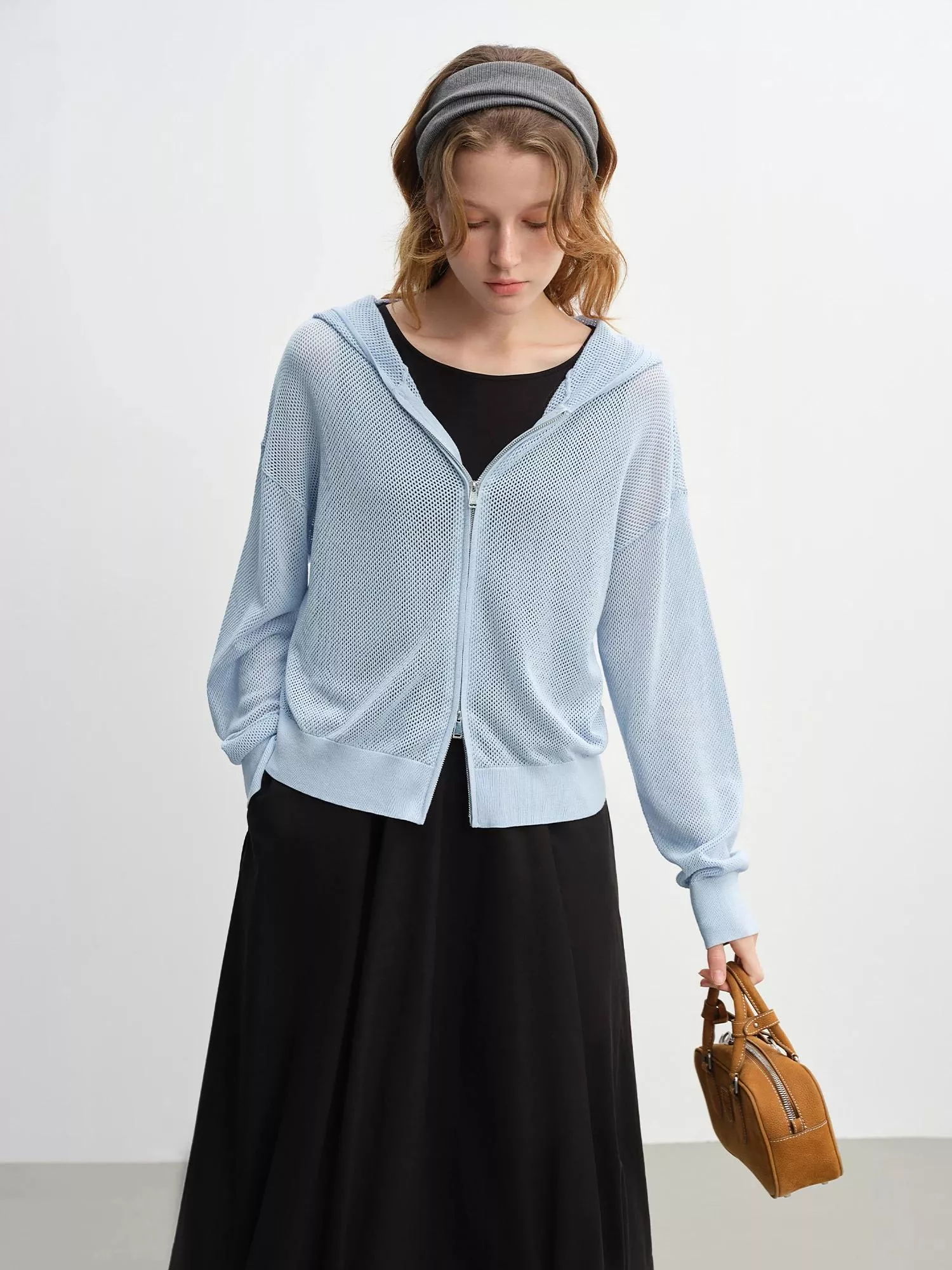 Embrace the ease of transitional dressing. This hooded knit cardigan blends lightweight luxury with effortless style — a staple piece that moves with you through the seasons.