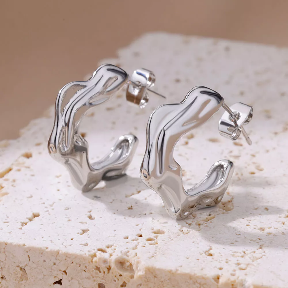 These irregular C-shaped earrings are not just another piece of jewelry – they are a statement of style and personality. The geometric design gives a contemporary edge to your outfit, making them perfect for a variety of occasions, from weddings and parties to casual outings. The stainless steel construction ensures that the earrings are durable and resistant to tarnishing, so you can enjoy them for years to come.
