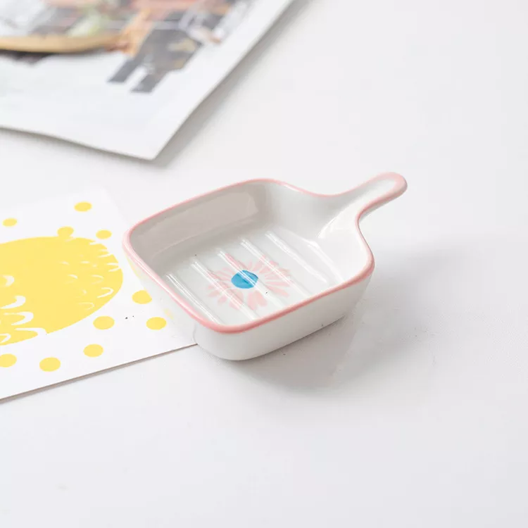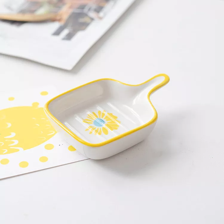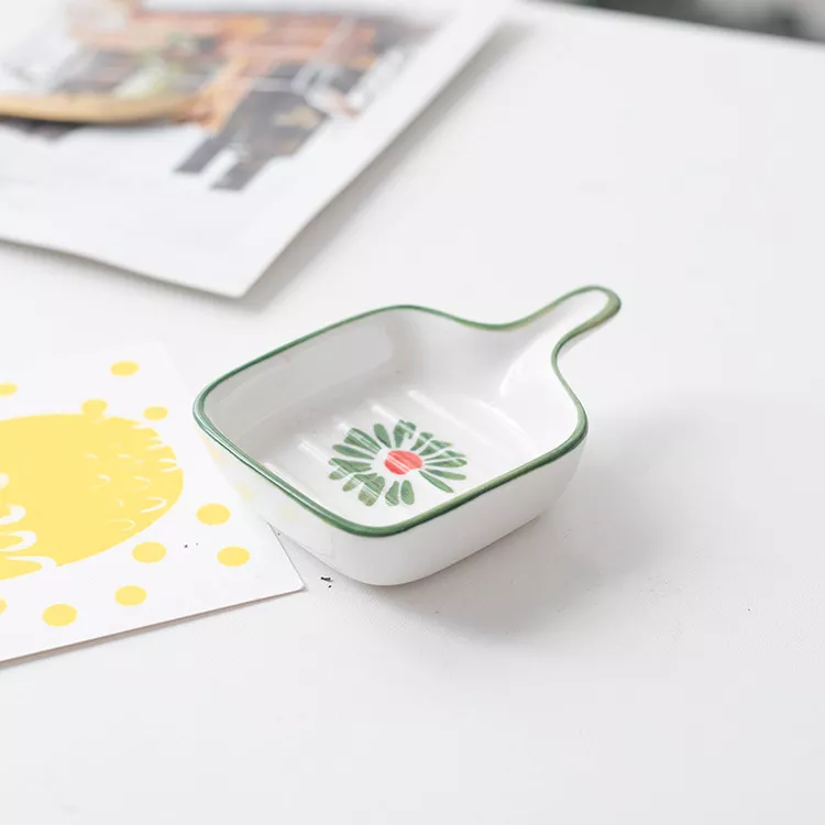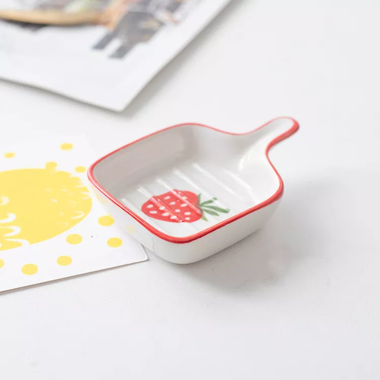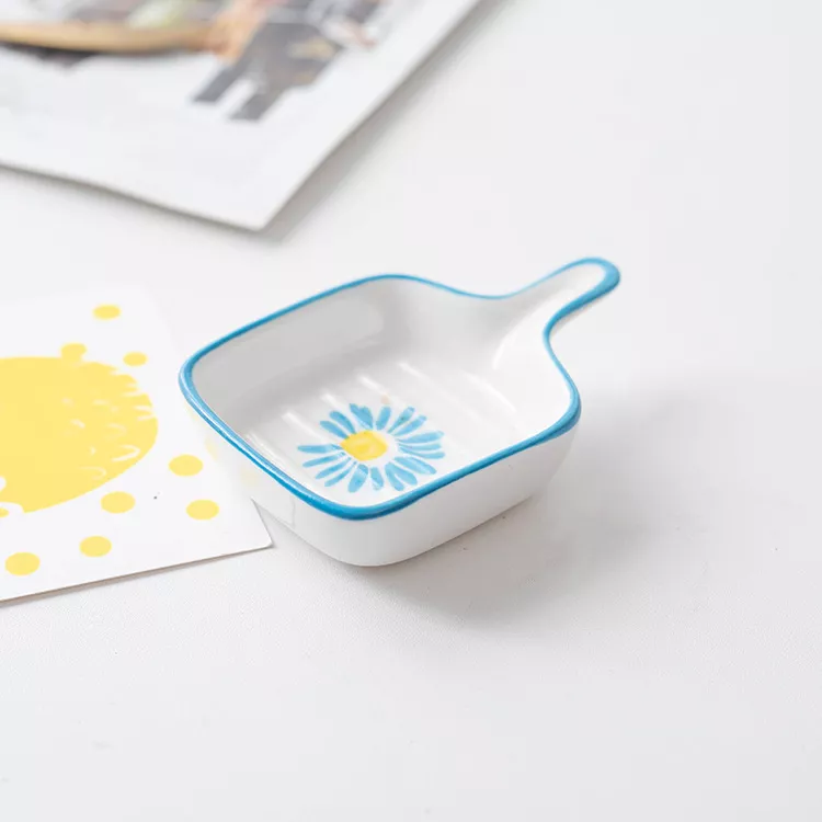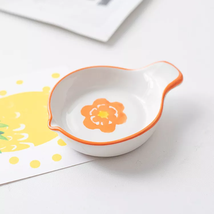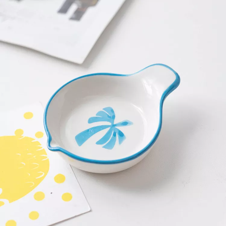 Japanese Small Plate Cartoon Pet Ceramic Plate Home Creative Mini Handle Cat Small Plate for Puppy Cat Dog Pet Supplies
