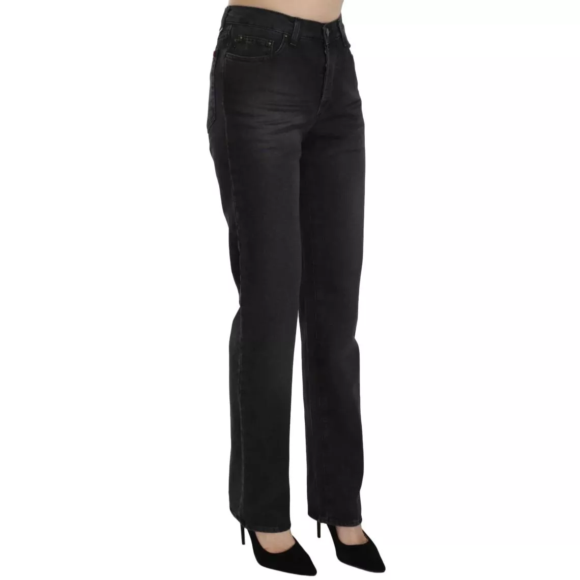 JUST CAVALLI Women’s Black High Waist Straight Leg Denim Pants – 100% Cotton