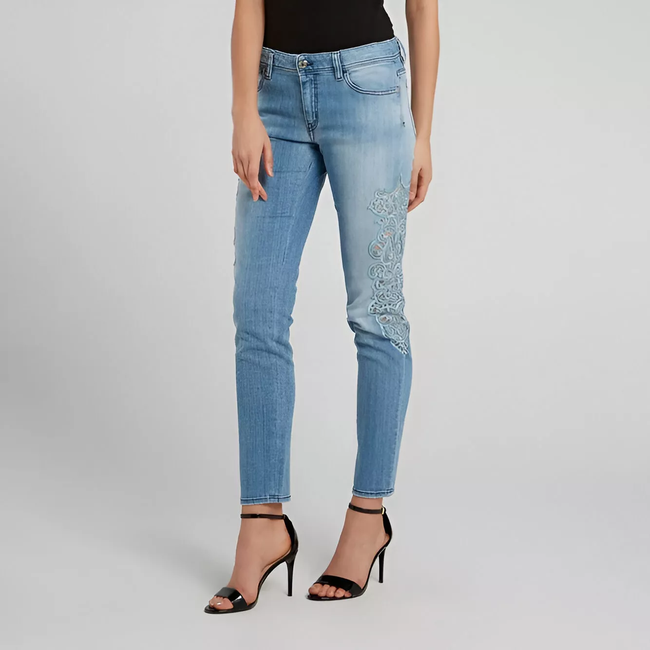 Just Cavalli Light Blue Embroidered Jeans for Women – Designer Denim