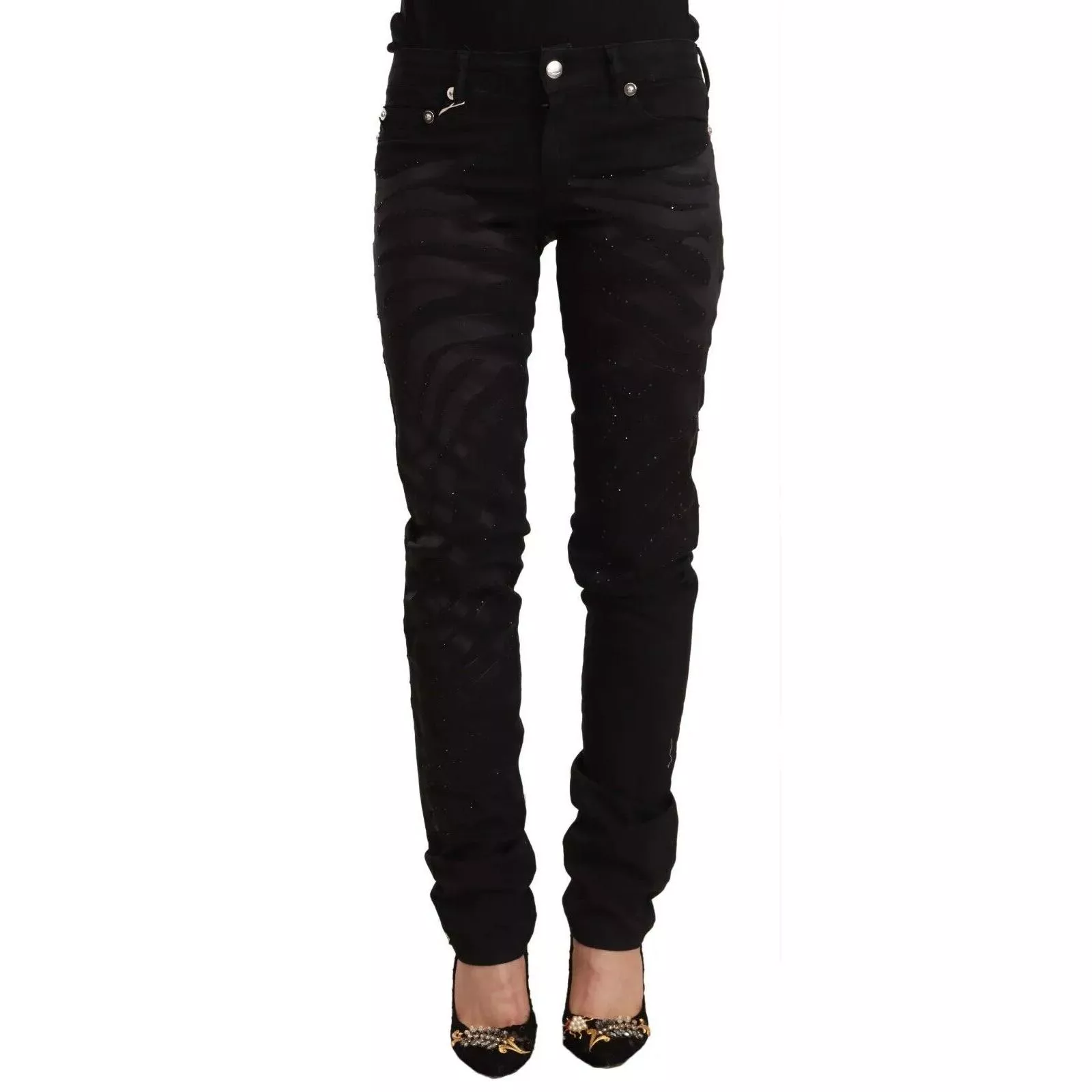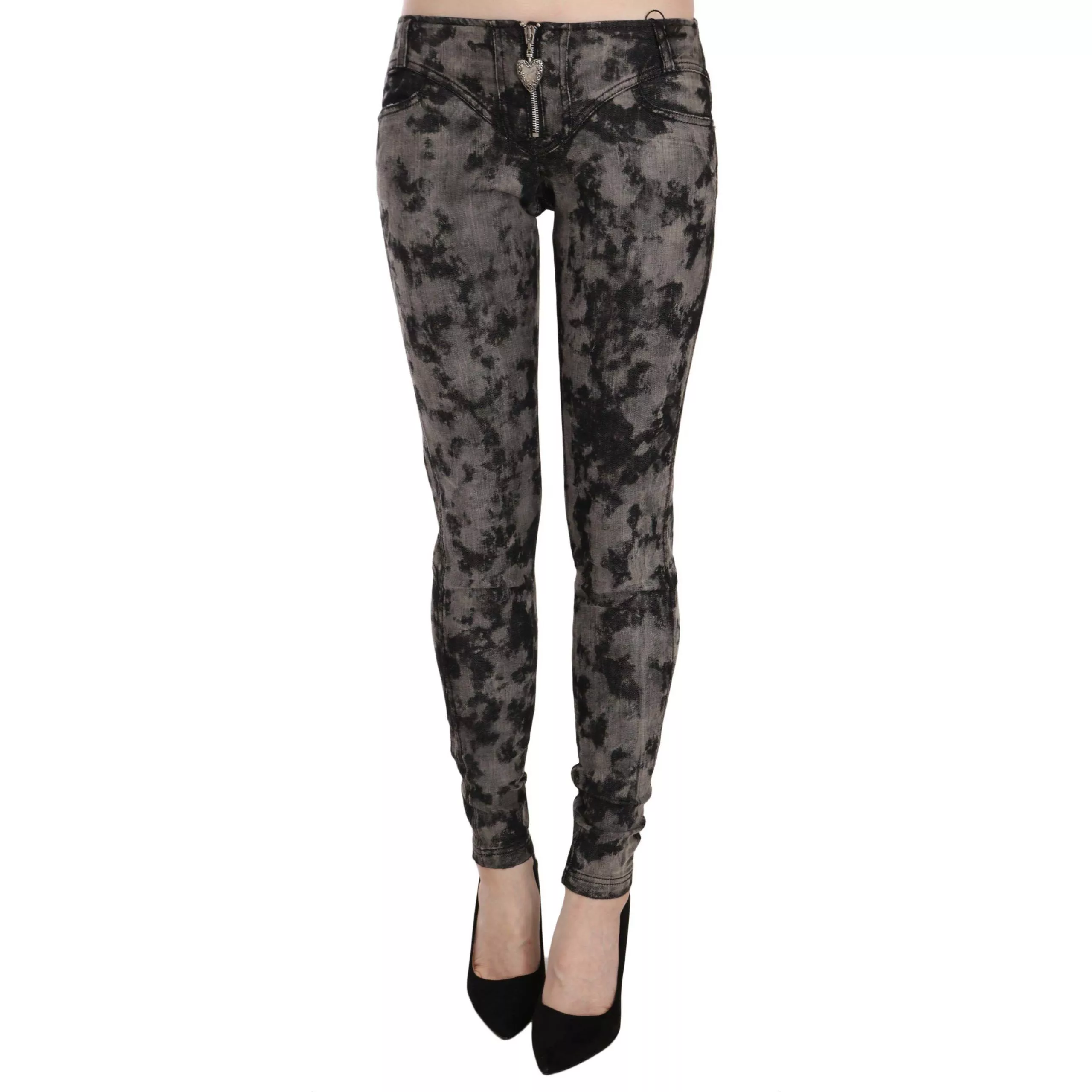 JUST CAVALLI Women’s Low Waist Skinny Denim Pants Black Gray Pattern
