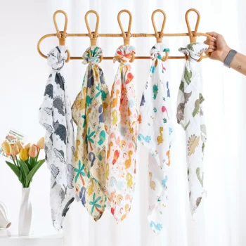 Soft Muslin Bamboo Cotton Baby Blanket Set – 24x24in Swaddle & Burp Cloths