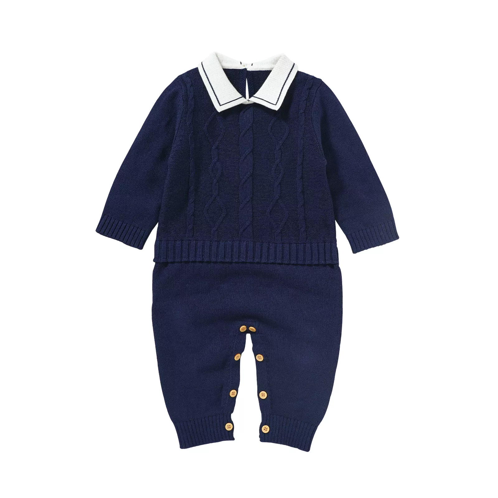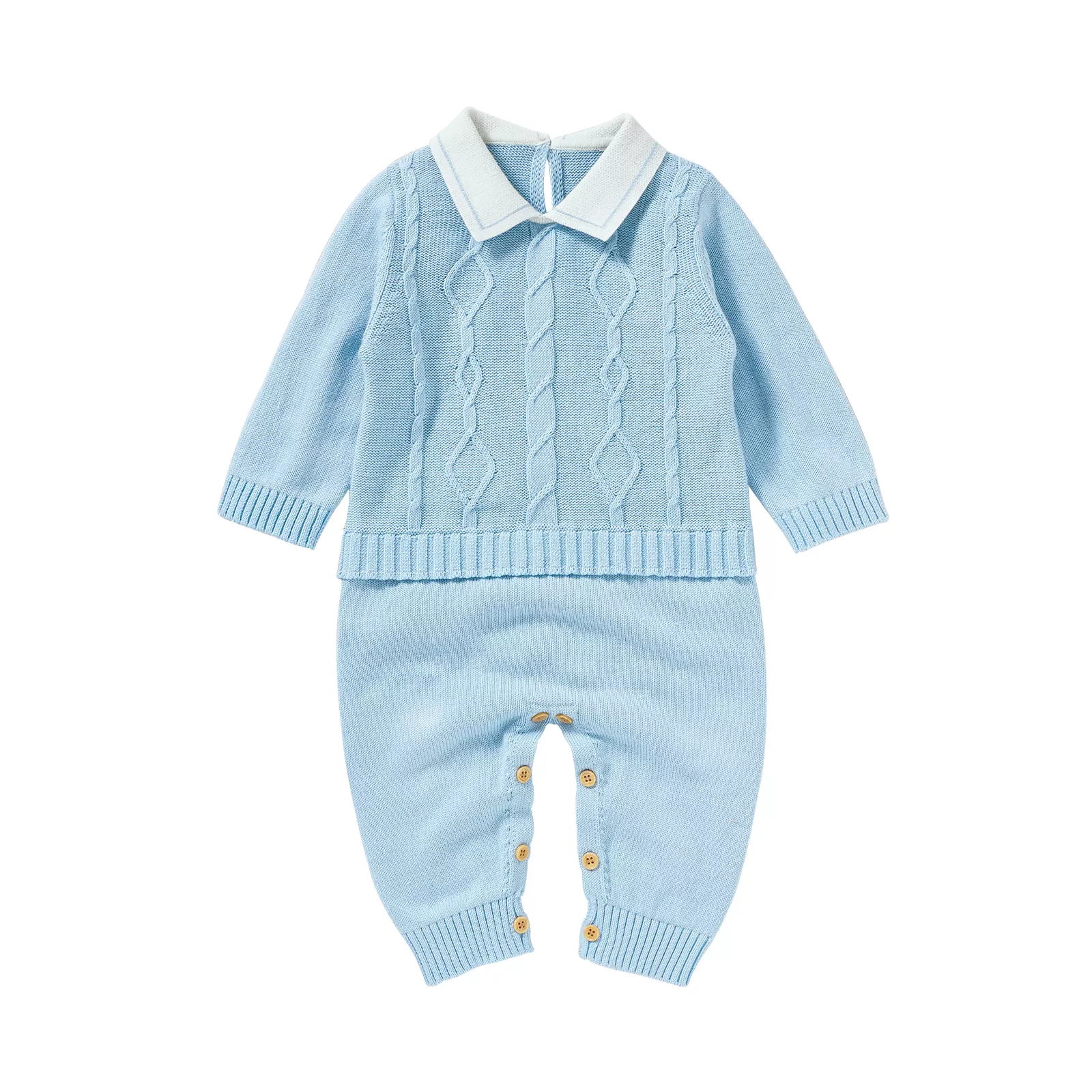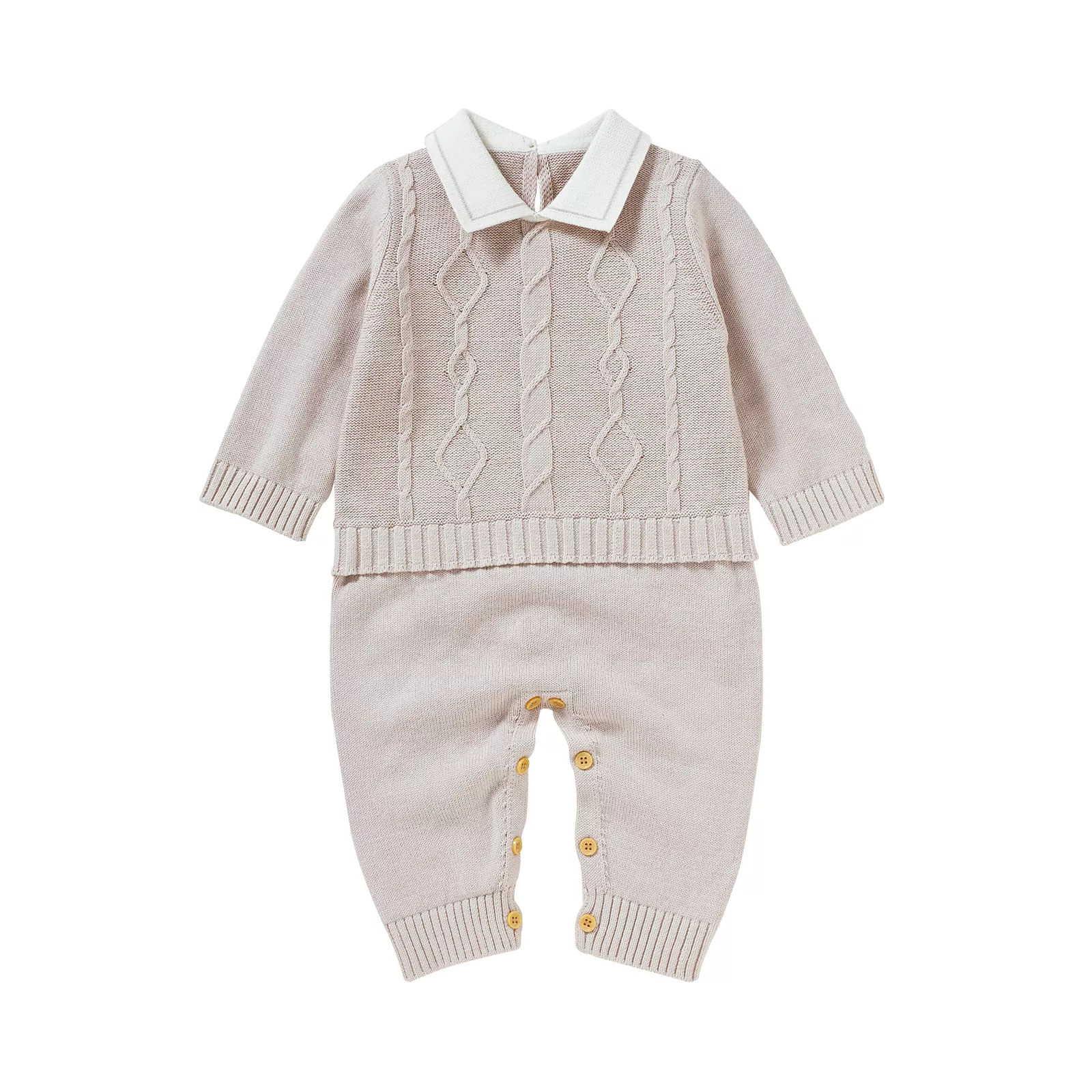 Knitted Cotton Baby Romper – Unisex Long Sleeve Jumpsuit (0-18 Months)