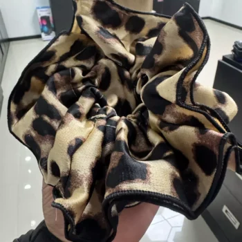 This leopard print scrunchie isn’t just stylish – it’s incredibly versatile. Wear it during the day while running errands, doing yoga, or working at your desk. At night, use it to tie your hair into a loose bun to reduce friction and tangles as you sleep. Its lightweight design means you can comfortably wear it on your wrist too, always ready for a quick hair fix.