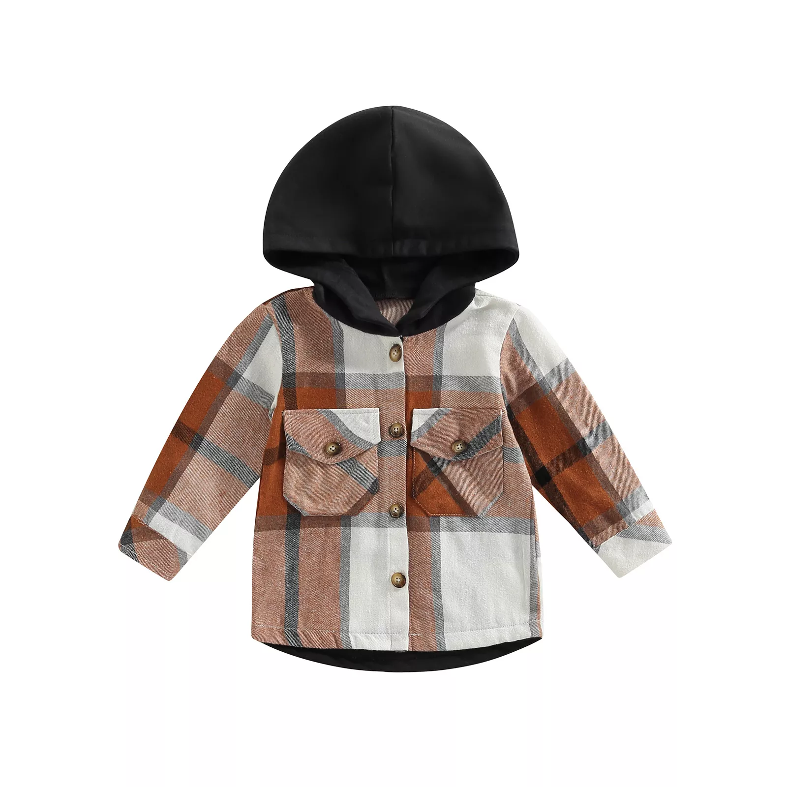 Little Boys Hooded Plaid Shirt Coat – Long Sleeve Casual Outerwear