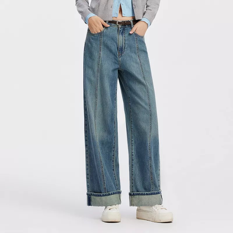 Loose Fit Rolled Hem Jeans – Casual Wide Leg Trousers
