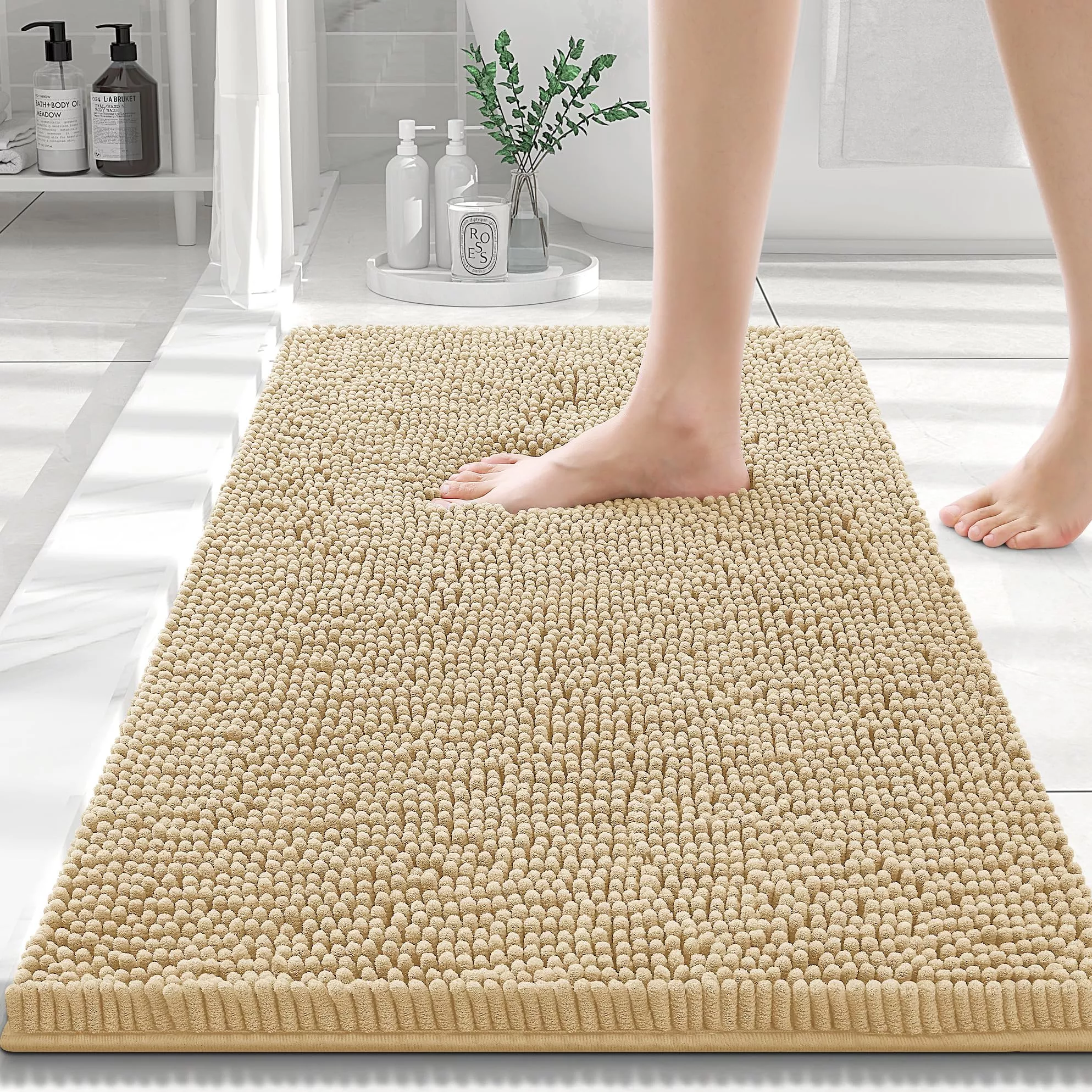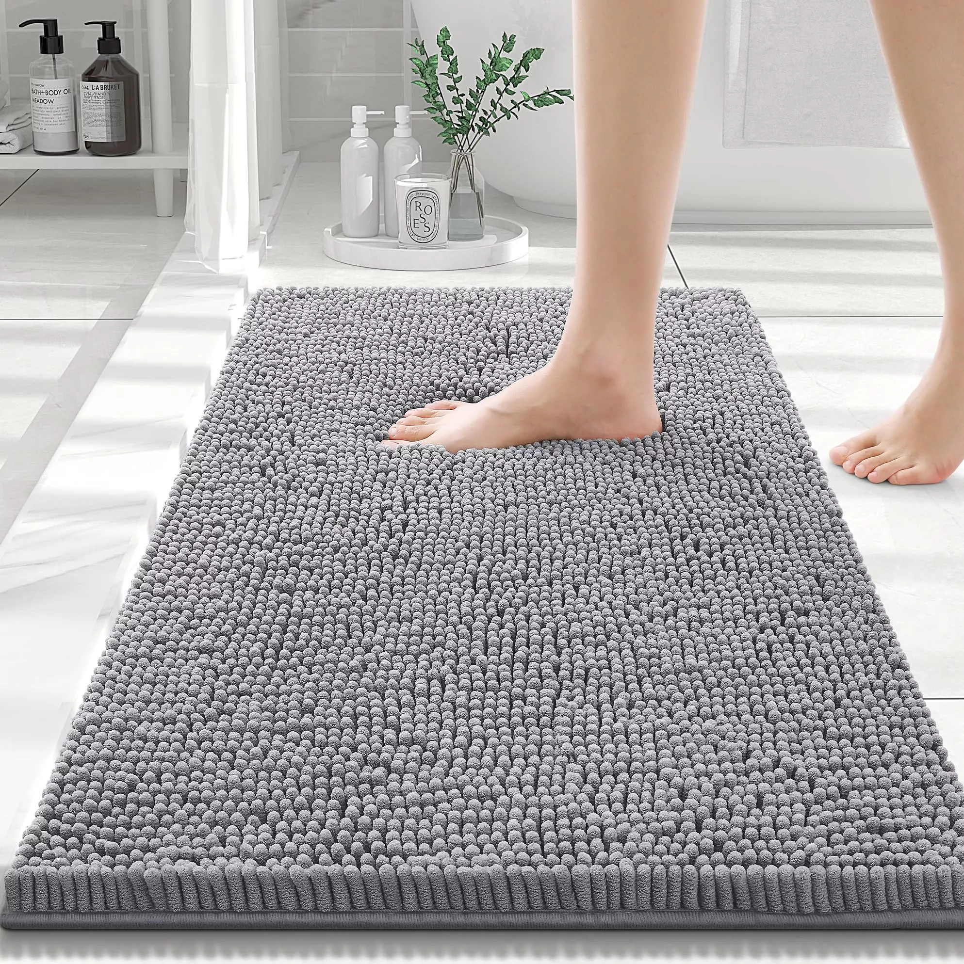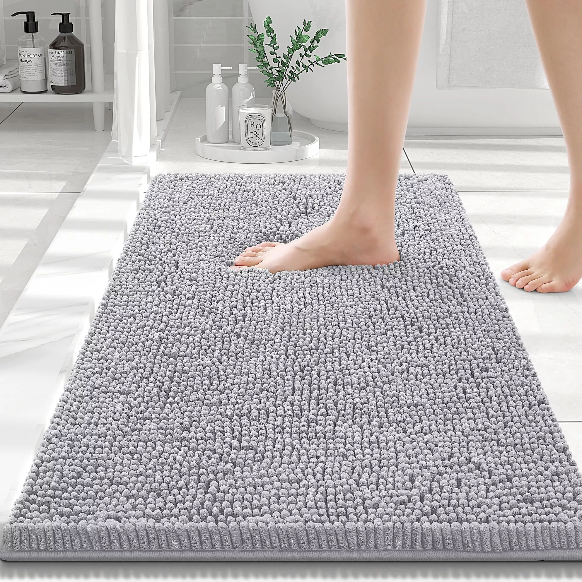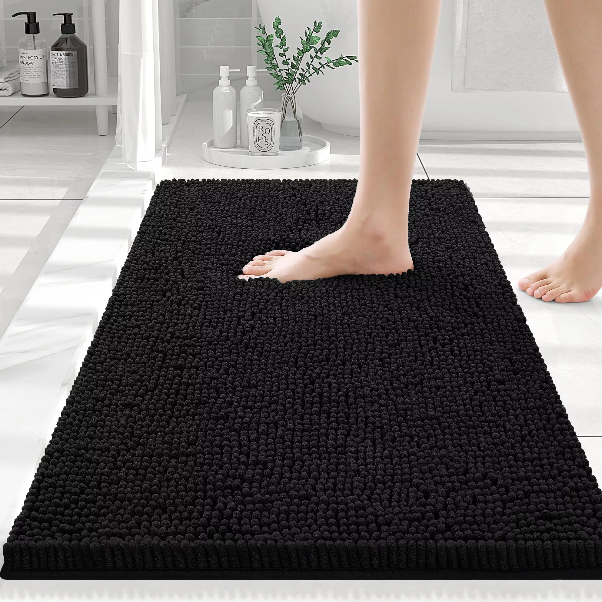 Luxury Chenille Shaggy Bath Rug – Extra Absorbent & Washable Bathroom Mat