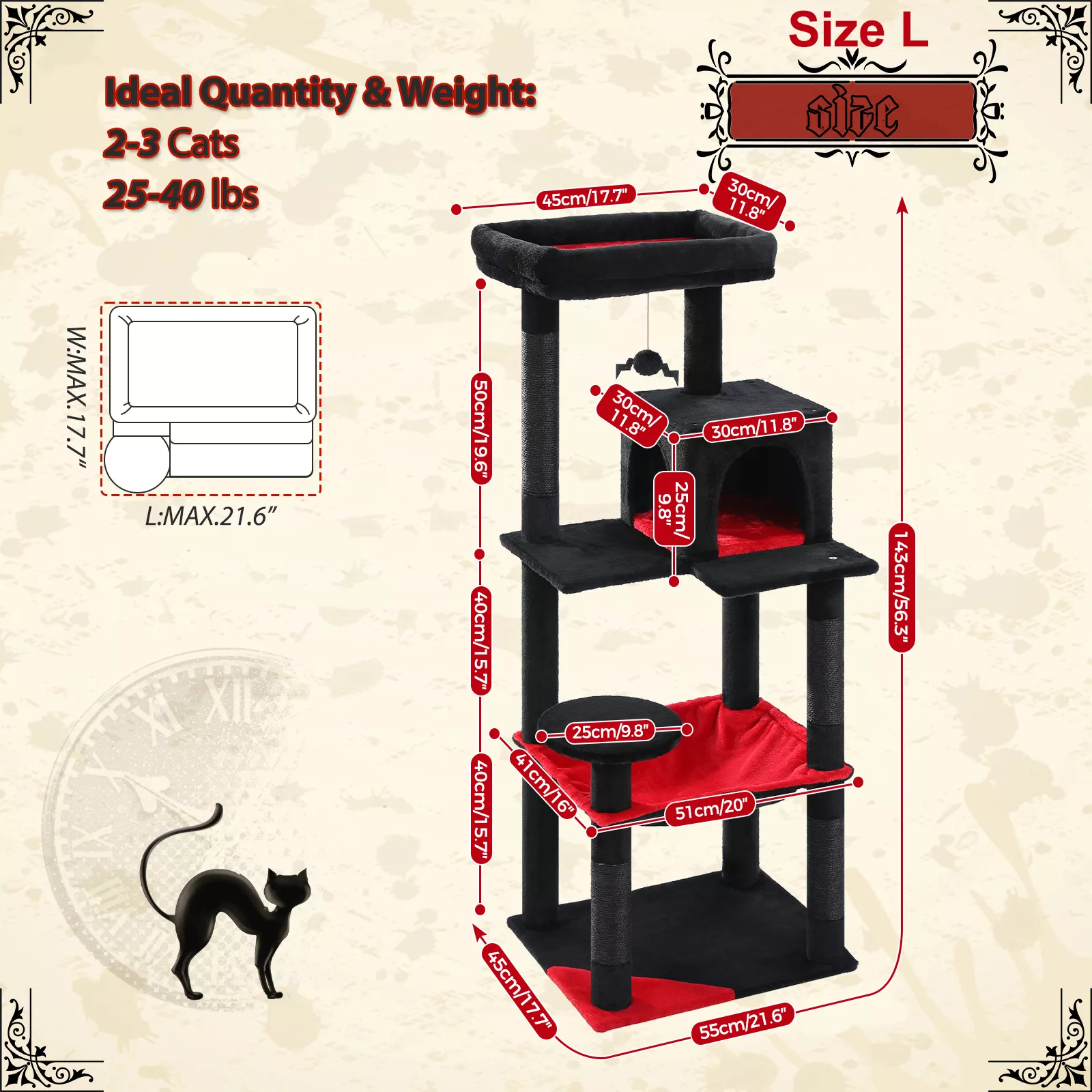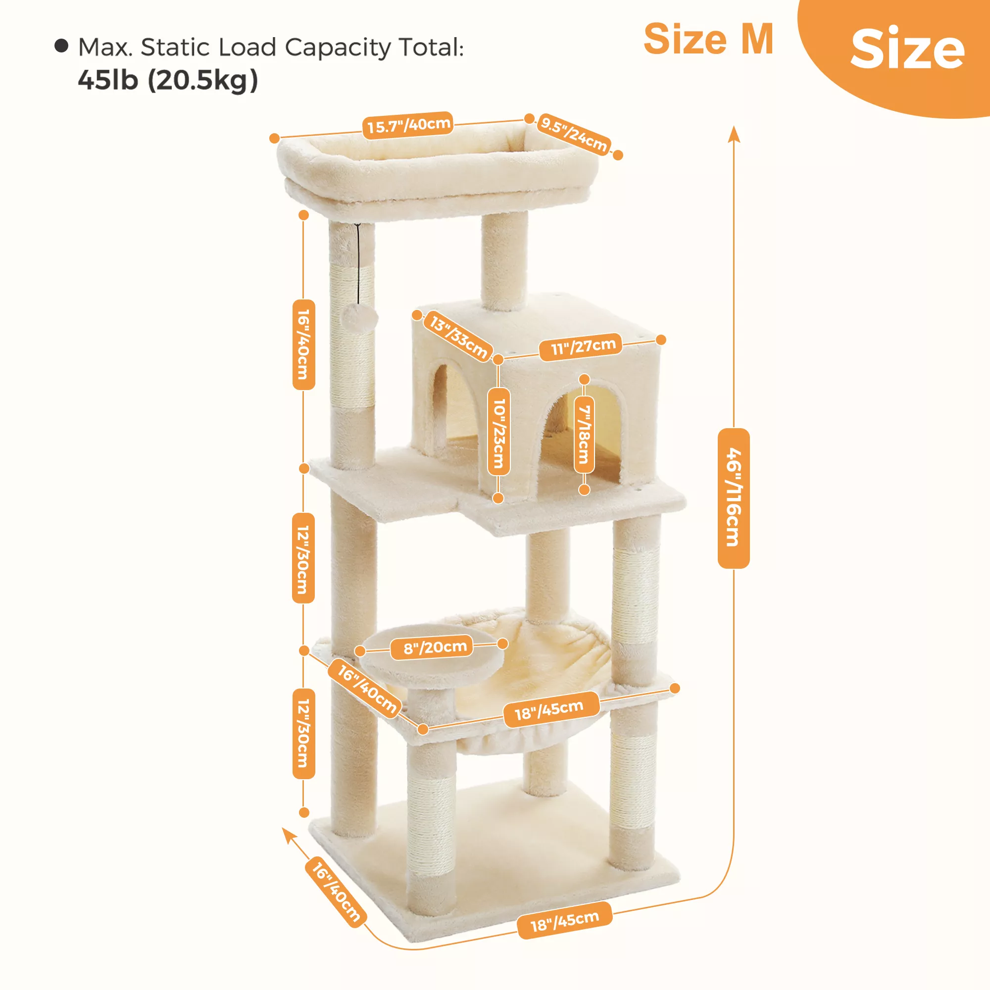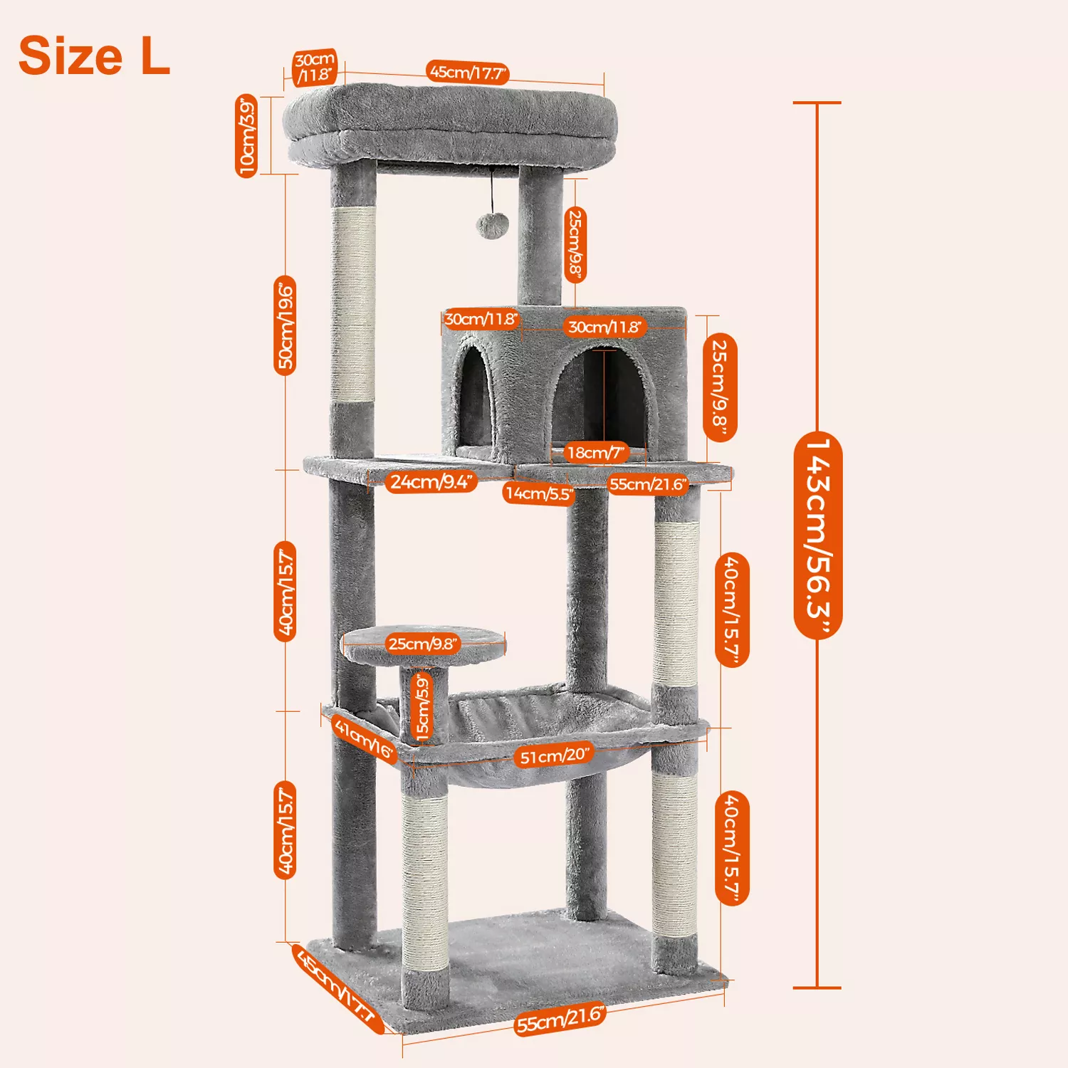 Designed with households that have one or multiple cats in mind, this elegant cat tower blends functionality with refined design. Whether it’s a morning nap in the oversized hammock, a playful climb to the top perch, or a quick scratch on the durable sisal posts, your feline companions will stay engaged and content all day long.