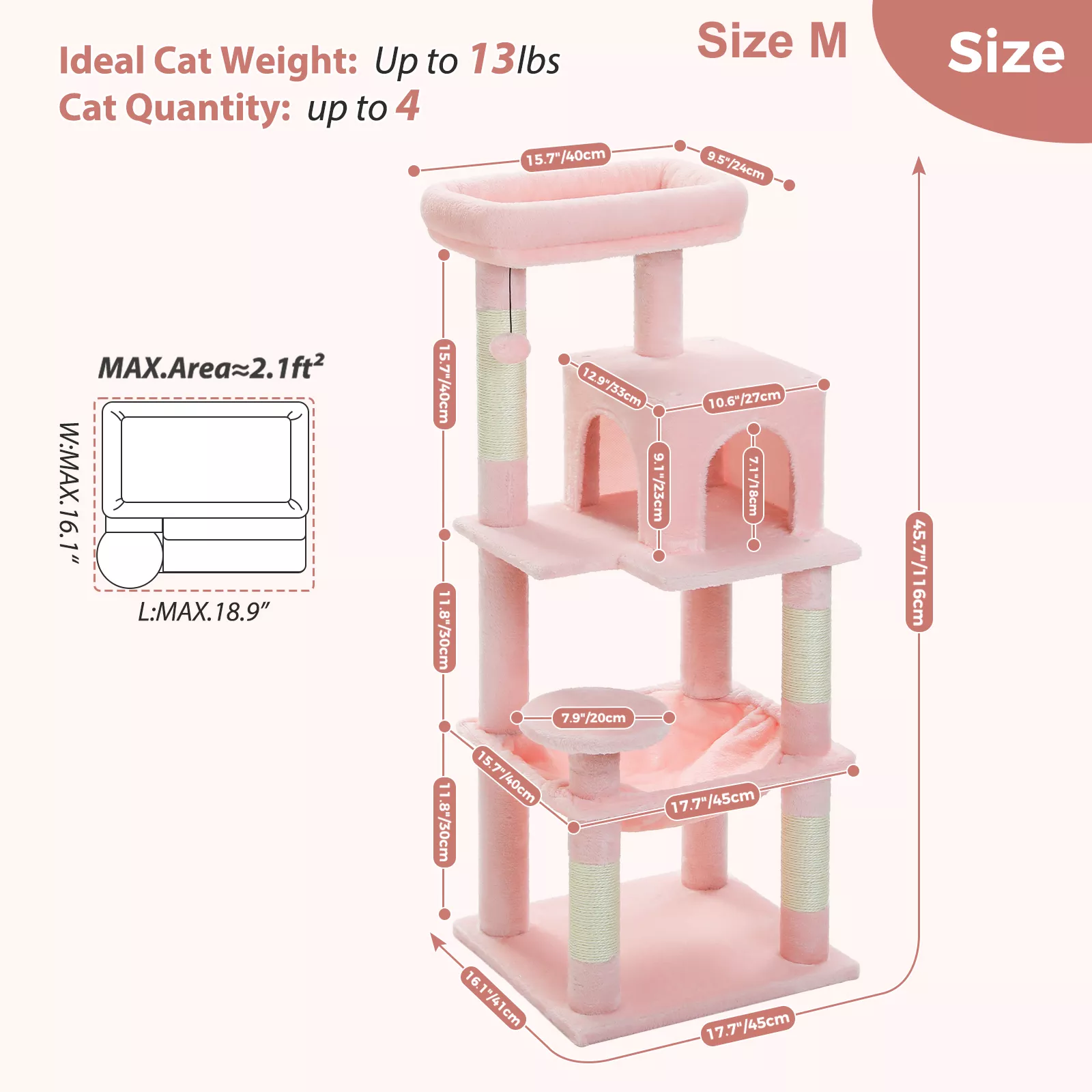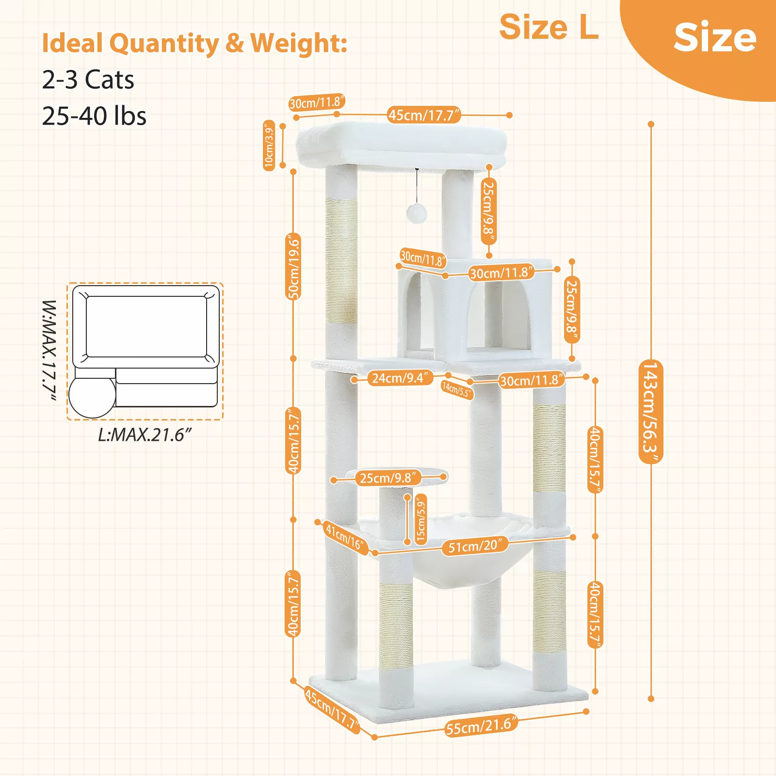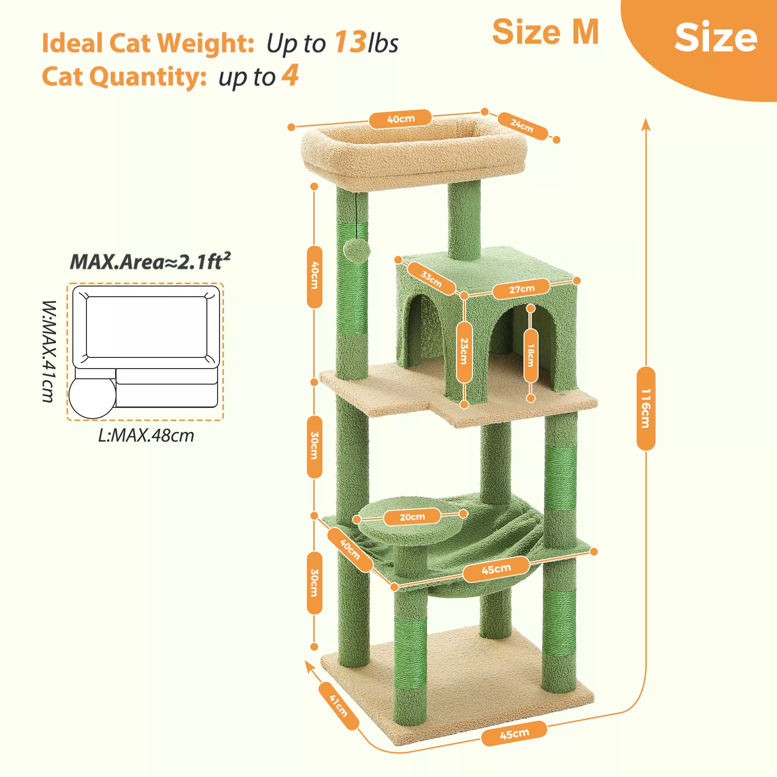 Designed with households that have one or multiple cats in mind, this elegant cat tower blends functionality with refined design. Whether it’s a morning nap in the oversized hammock, a playful climb to the top perch, or a quick scratch on the durable sisal posts, your feline companions will stay engaged and content all day long.