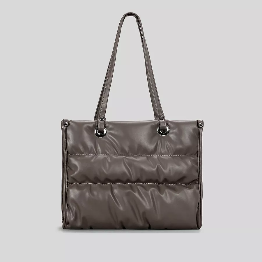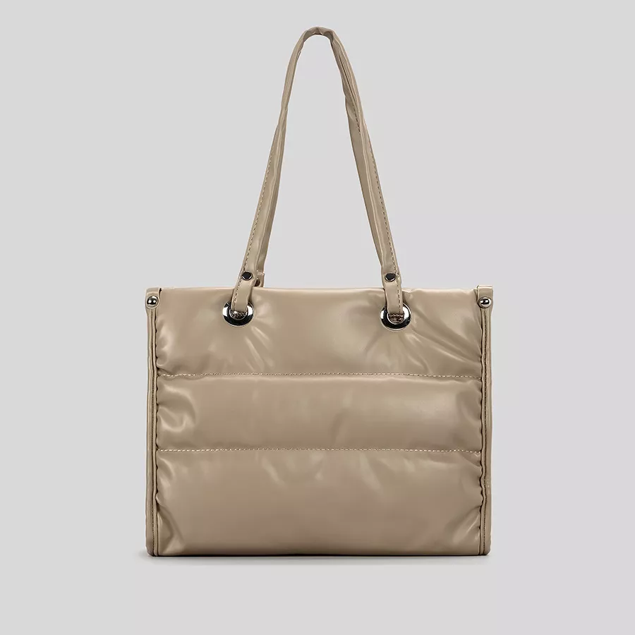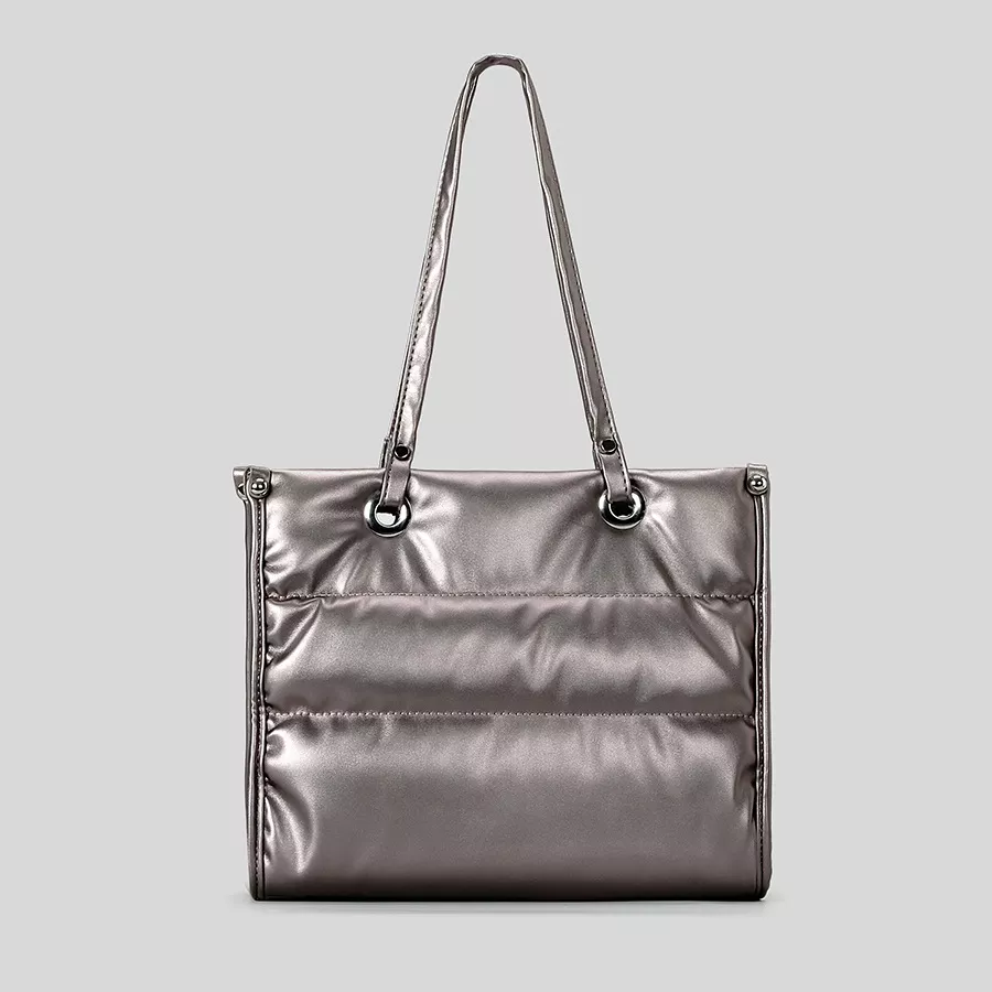 Luxury Quilted PU Leather Puffer Tote Bag – Silver Shoulder Handbag