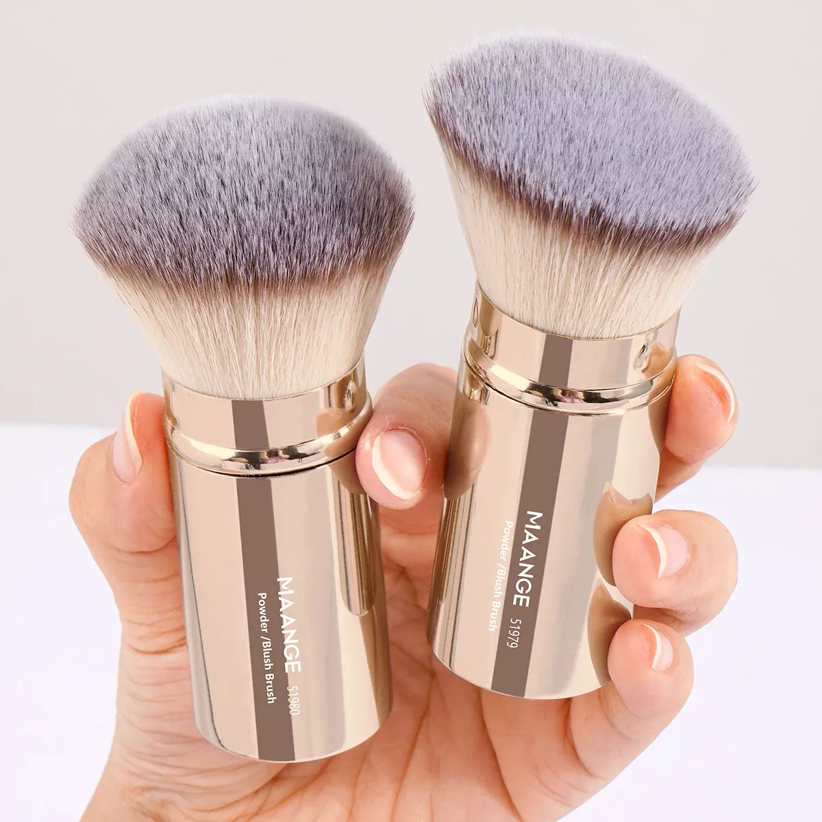 2PCS Retractable Kabuki Makeup Brush Set – Flat & Angled for Foundation, Blush, Bronzer