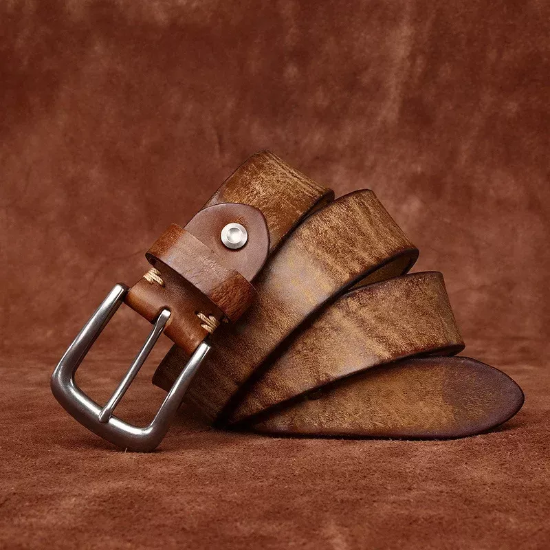 Elevate your everyday style with this high-quality genuine leather belt, crafted from first-layer pure cowskin for unmatched durability and a luxurious feel. Measuring a versatile 1.5 inches wide (3.8 cm), this belt is designed to perfectly complement jeans, casual trousers, or even smart-casual outfits. Its retro-inspired design, combined with a sleek matte stainless steel pin buckle, offers both timeless charm and modern appeal.