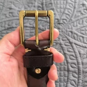 The copper pin buckle on this belt not only looks stylish but also holds up well throughout the day. Highly recommend!