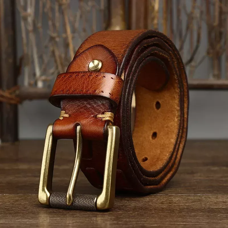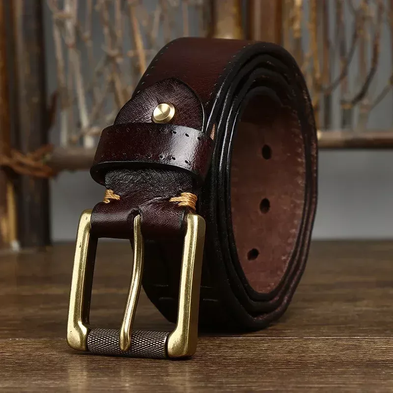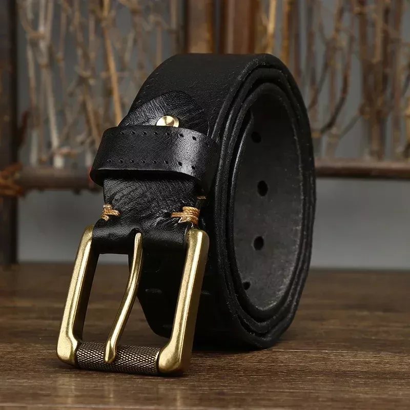 Crafted from full grain first-layer cowhide, this belt feels as good as it looks. Its hand-braided detailing gives it a unique, rustic character while ensuring it stays flexible yet sturdy. The 1.5-inch (3.8 cm) width fits perfectly through most standard belt loops. A solid copper square pin buckle adds a luxurious, masculine edge that won’t tarnish or wear down easily.