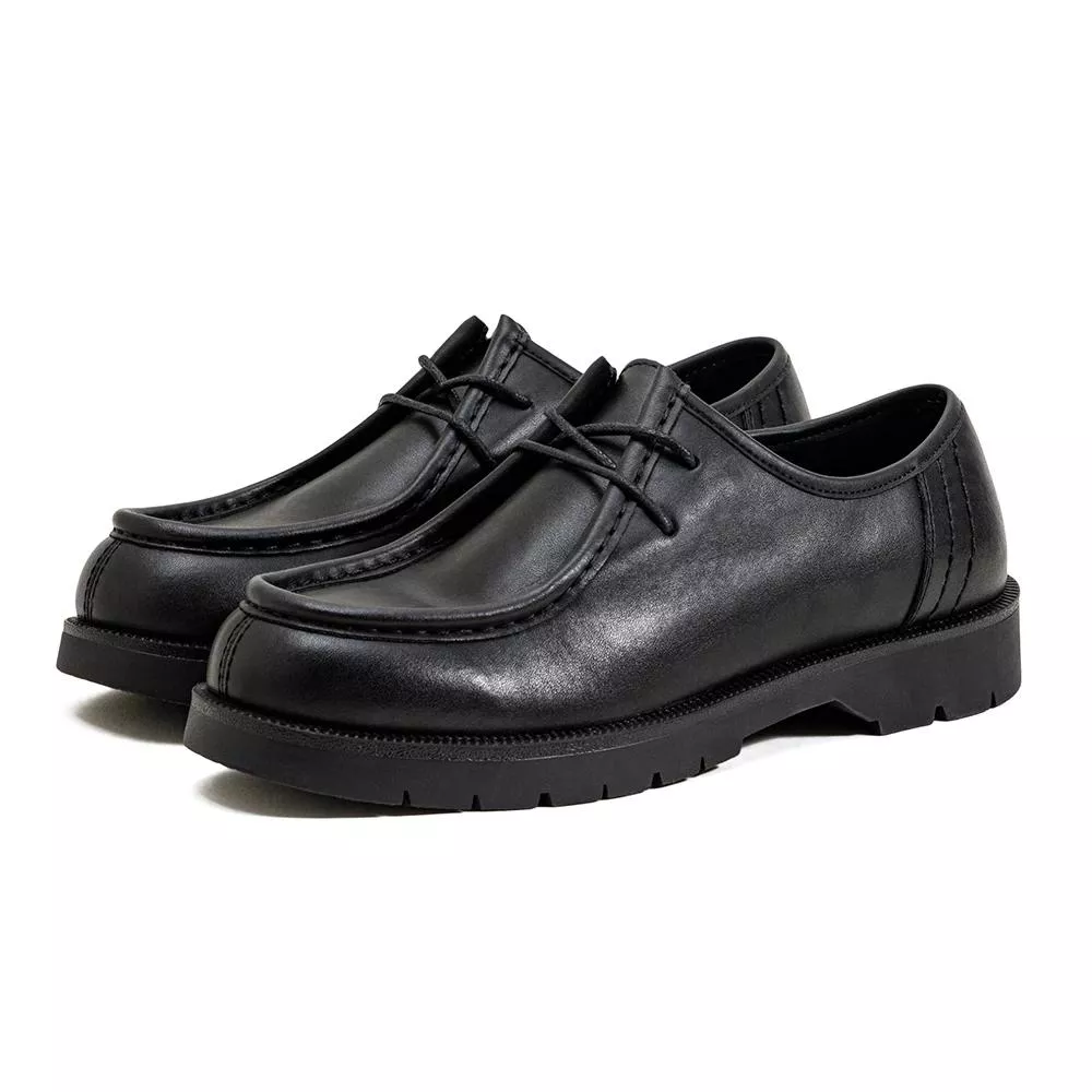 These black leather derby loafers are more than just shoes — they’re a statement. Designed for daily wear, from the office to weekend outings, they embody sophistication without sacrificing comfort. Their low-top construction adds ease to your routine, while the attention to vintage details ensures you stand out in any setting. Whether you’re dressing up or down, these shoes adapt effortlessly to your look.