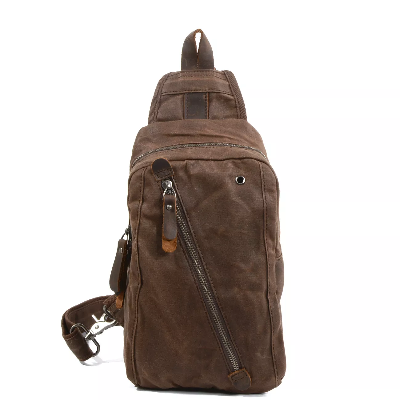 Men’s Vintage Waxed Canvas Sling Bag – Waterproof Crossbody Chest Pack