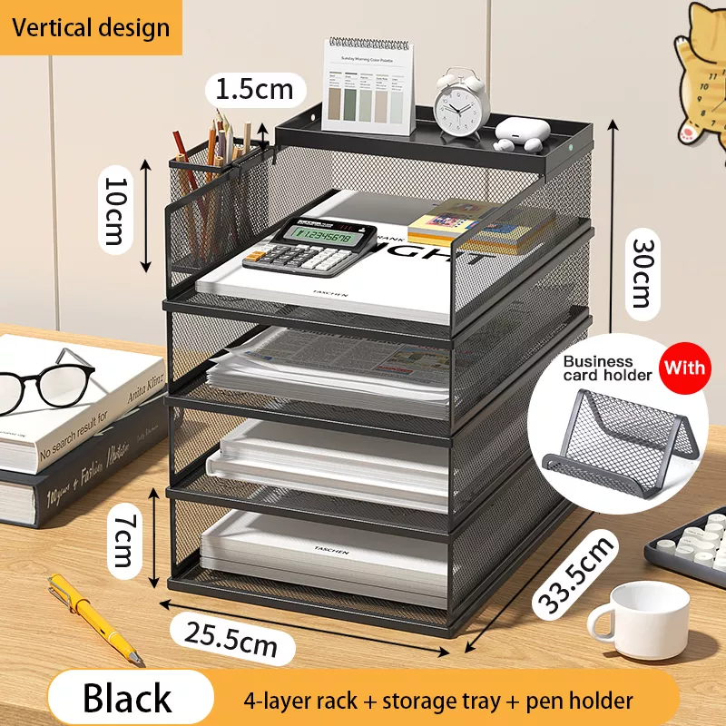 Made from durable metal mesh, this organizer not only looks professional but also withstands daily use without bending or breaking. Its vertical design features multiple spacious layers, allowing you to sort papers, mail, notebooks, and even small office supplies with ease. Measuring approximately 12 inches high, it fits comfortably on desks, shelves, or countertops, making it ideal for both home and office environments.