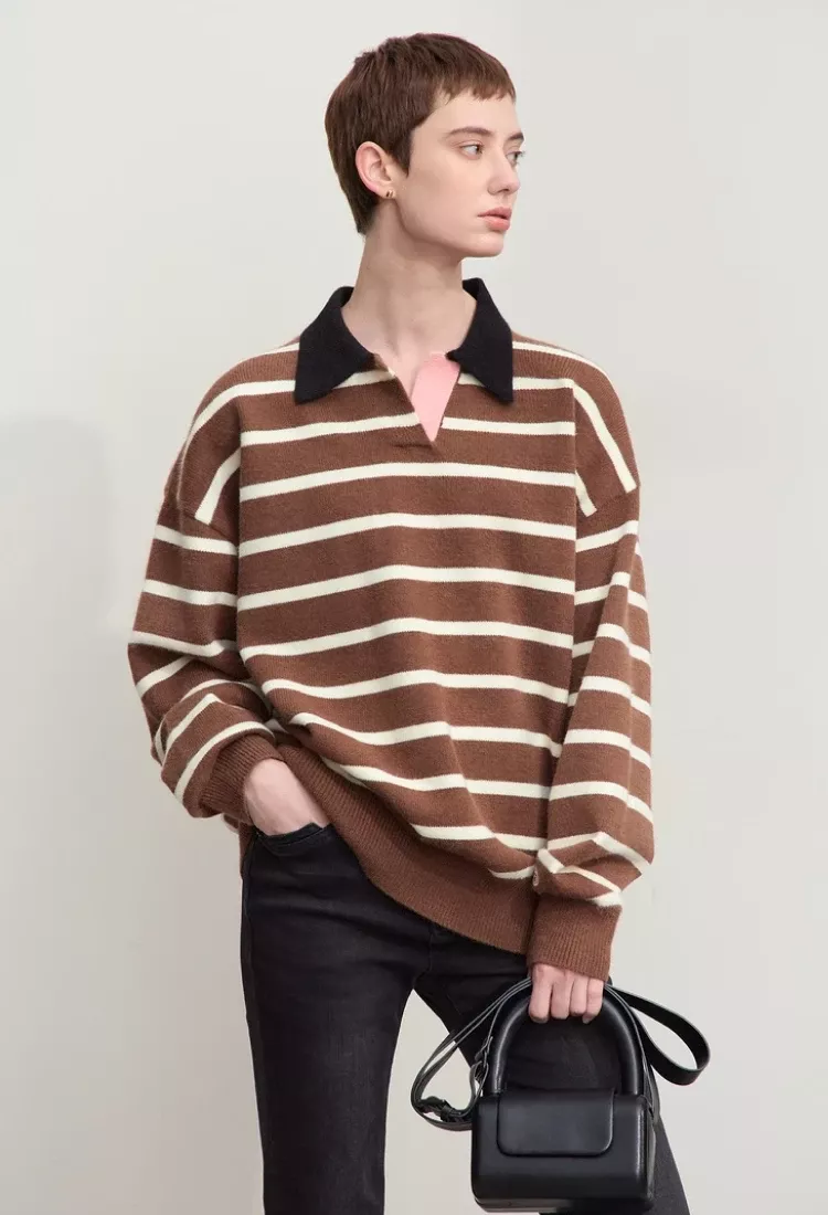 This sweater is not just another seasonal essential; it’s a statement piece that combines fashion with function. The turn-down collar adds a sophisticated touch, while the striped pattern ensures you stand out with an effortlessly chic vibe. The loose-fitting design offers freedom of movement, making it perfect for layering over your favorite tops or wearing alone for a relaxed look.