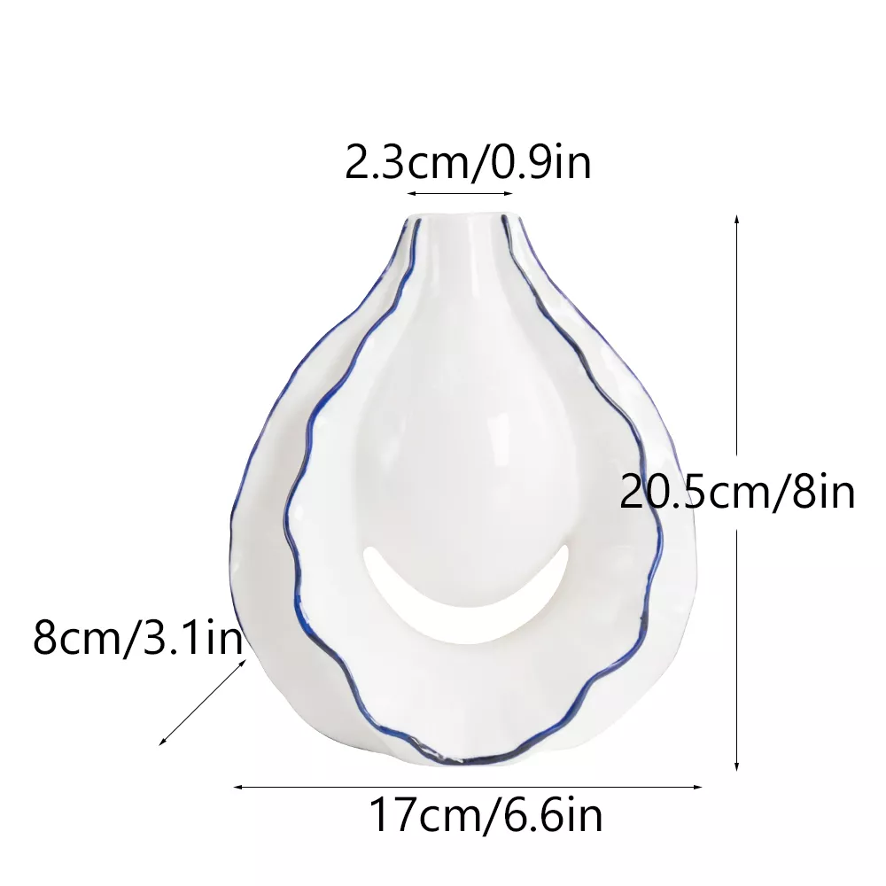 Crafted from high-quality ceramic and porcelain, the vase offers durability with an artistic flair. Its sleek oyster-inspired form adds a touch of oceanic sophistication to your table, shelf, or dresser. This mid-sized vessel (approx. 9–12 inches tall) fits seamlessly into both small and spacious settings, making it ideal for a wide range of interior themes from modern minimalism to coastal luxe.