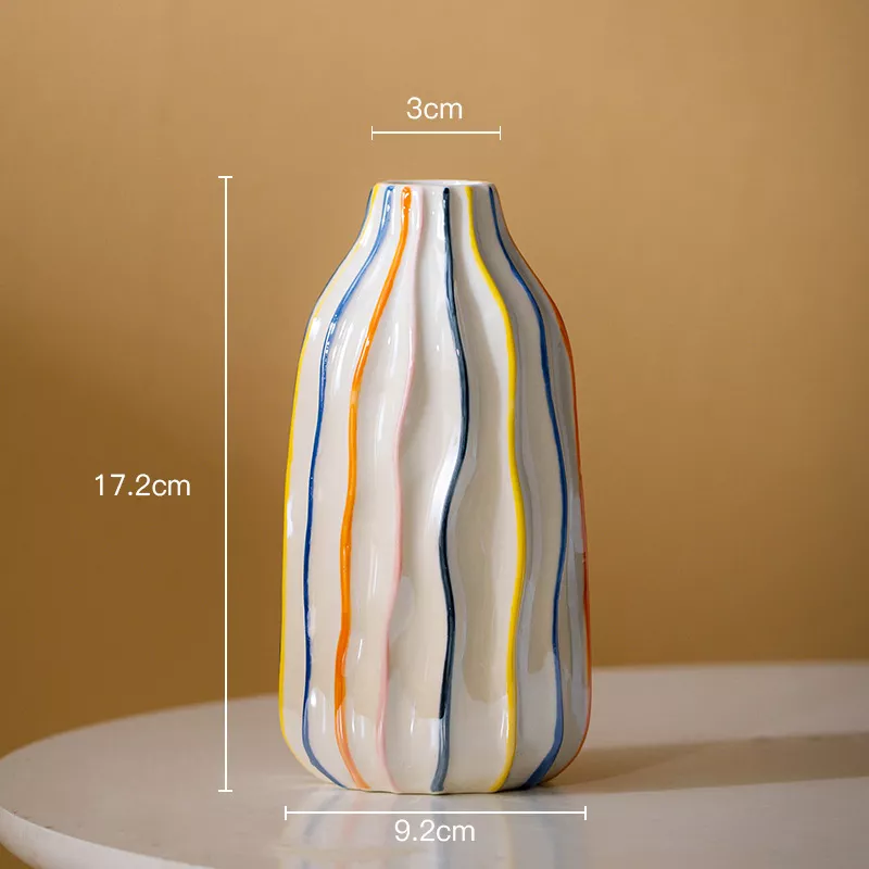 Give your living space a fresh and vibrant look with this Colorful Stripe Ceramic Vase. Designed in a sleek modern style, this medium-sized decorative vase instantly elevates any room. Its bold stripes and smooth porcelain finish make it a stunning centerpiece that catches the eye whether placed on a mantel, coffee table, or dining table. Perfect for holding your favorite pampas grass, dried flowers, or fresh blooms, this vase is a must-have accent for stylish interiors.