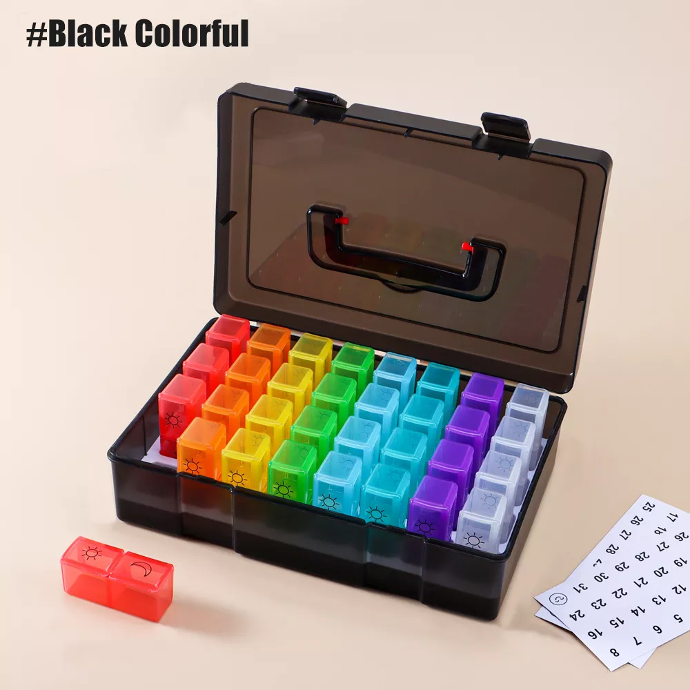 What makes it special? Unlike typical weekly organizers, this system covers a full 30 days. It saves space, reduces waste, and gives you peace of mind. The sturdy yet lightweight case also transforms it into a multipurpose storage box—versatile and reliable wherever you go.