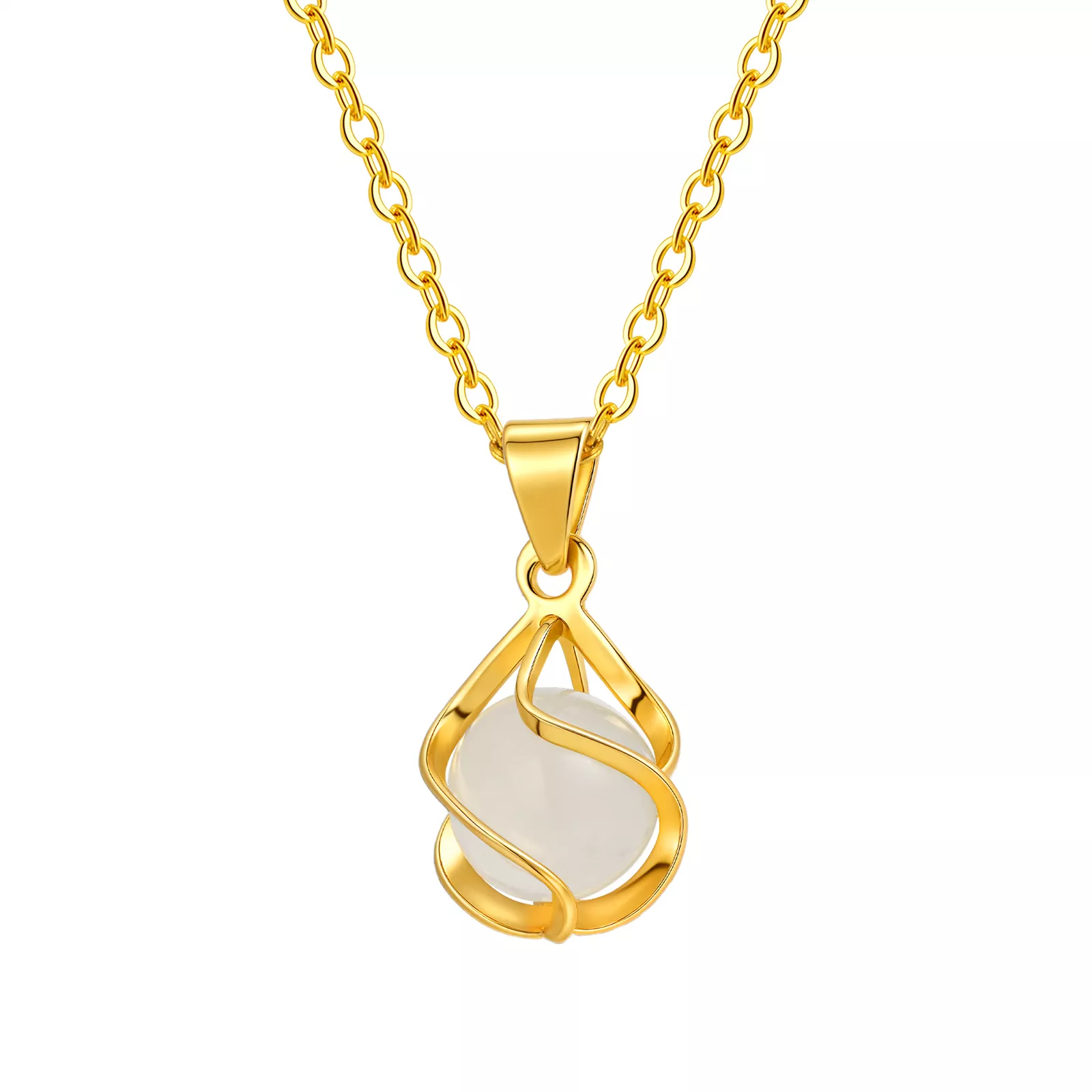 Natural Stone Pendant Necklace for Women – Adjustable Stainless Steel Chain