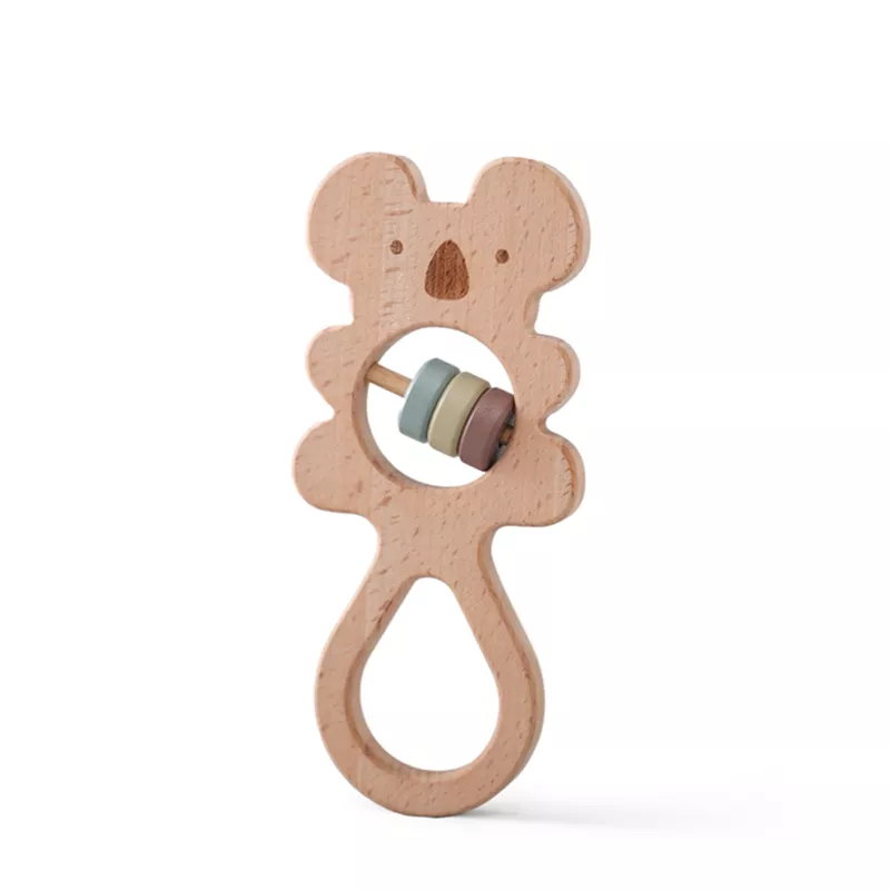 Delight your baby’s senses with this beautifully crafted Natural Wooden Baby Rattle & Teether – designed to soothe teething gums while keeping little hands happily engaged. Featuring a charming koala and elephant shape, this adorable rattle is made from high-quality beech wood and is completely free from harmful chemicals. It’s more than just a toy – it’s a comforting companion during your baby’s early development stages.