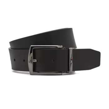 Tommy Hilfiger Men’s Black Leather Belt with Buckle