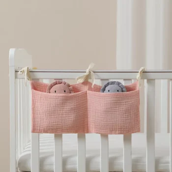 Baby Crib Hanging Organizer – Cotton Storage Bag for Diapers, Toys & Essentials