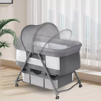 3-in-1 Convertible Rocking Bassinet with Mosquito Net & Storage for Newborns