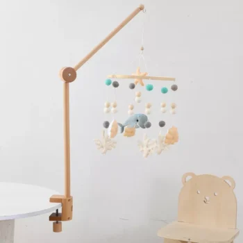 Baby Wooden Mobile Rattle Toy – Adjustable 360° Crib Bed Bell with Music Box & Multidirectional Mounting