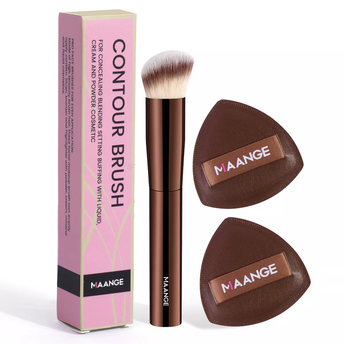 Discover the secret to a flawless finish with this professional angled concealer makeup brush paired with two soft air cushion puffs. Designed for liquid and cream cosmetics, this beauty essential makes blending effortless, ensuring your foundation, concealer, and bronzer look smooth, natural, and perfectly polished every time. The angled shape gives you precision control, making it ideal for sculpting facial contours and reaching every detail of your look.