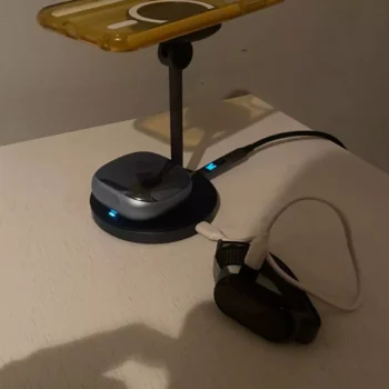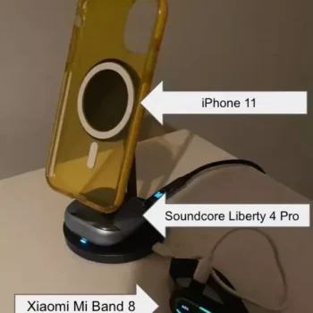 I'm loving how convenient this 2-in-1 stand is! It holds my phone and AirPods perfectly while giving them a quick power boost when needed. The magnetic hold is strong enough to keep everything securely in place, yet gentle enough not to damage any devices. This product really delivers on its promise of simultaneous wireless charging without compromising speed or safety.