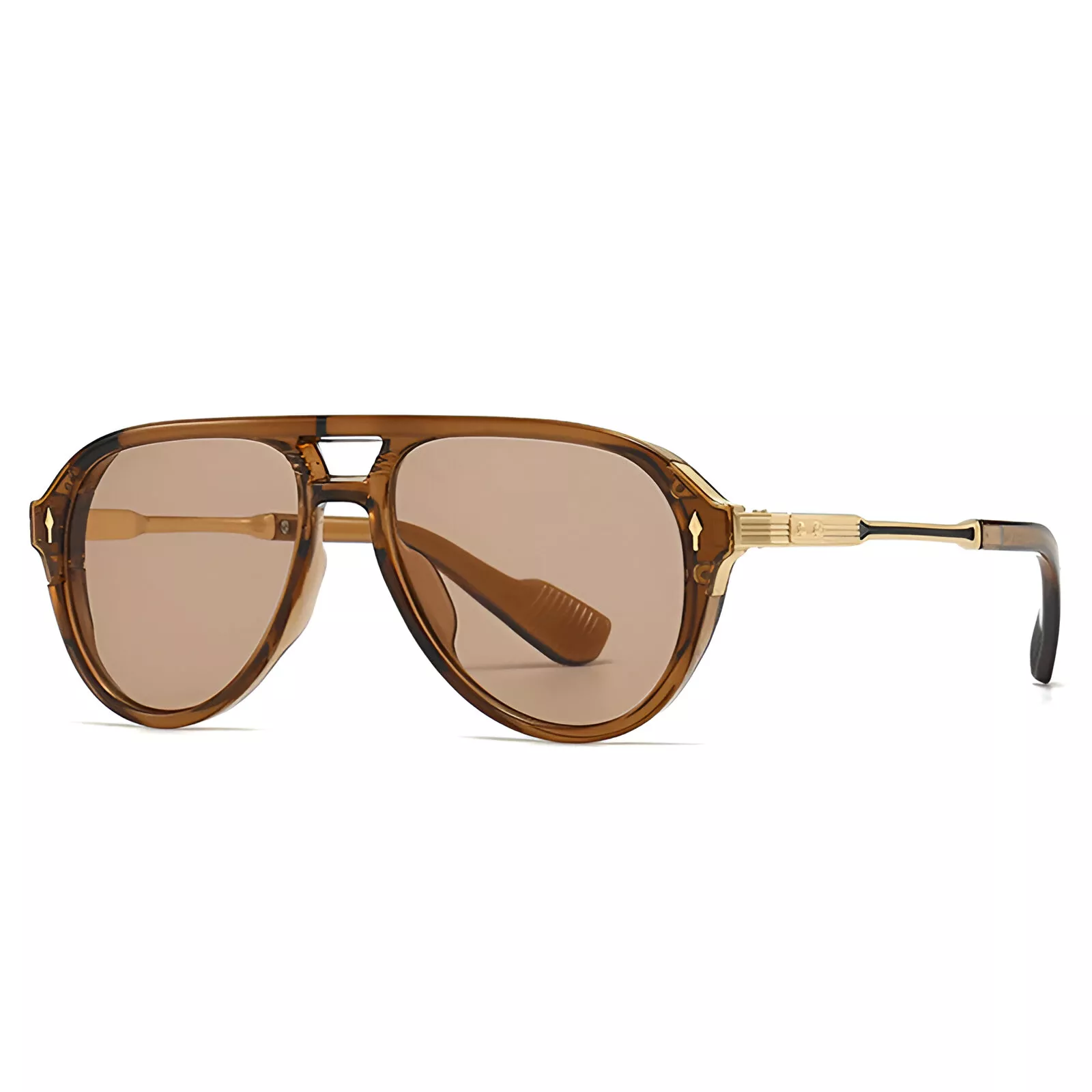 These sunglasses are truly a class apart. The double bridge pilot design is not only stylish but also adds an element of edginess to my look. I love how they've combined the retro vibe with a contemporary twist, making them perfect for any occasion - be it casual or sporty. The polycarbonate frame is incredibly durable and lightweight which makes them comfortable for extended wear. Plus, the UV400 protection ensures my eyes are shielded from harmful rays during outdoor activities. All in all, these shades have become my go-to accessory!