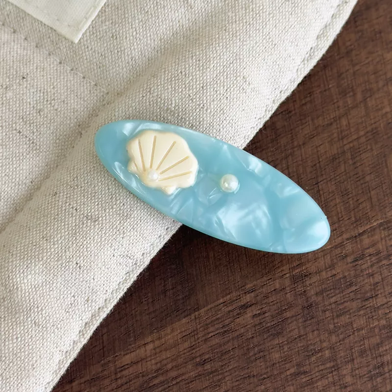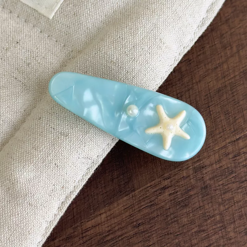 Bring a touch of ocean magic to your everyday look with these Sea Blue Shell & Starfish Hair Clips. Designed with a dreamy sea-blue finish and adorable starfish and shell details, these retro acetate hairpins are the perfect way to add sweetness and charm to any hairstyle. Lightweight yet durable, they stay comfortably in place while giving your outfit a playful, feminine touch.