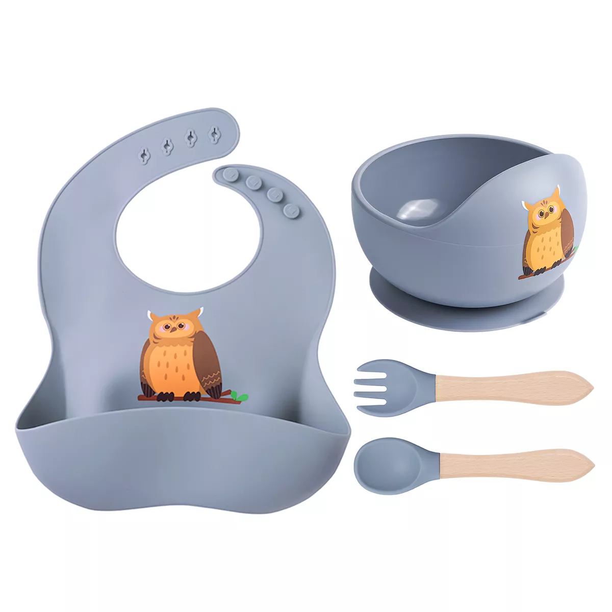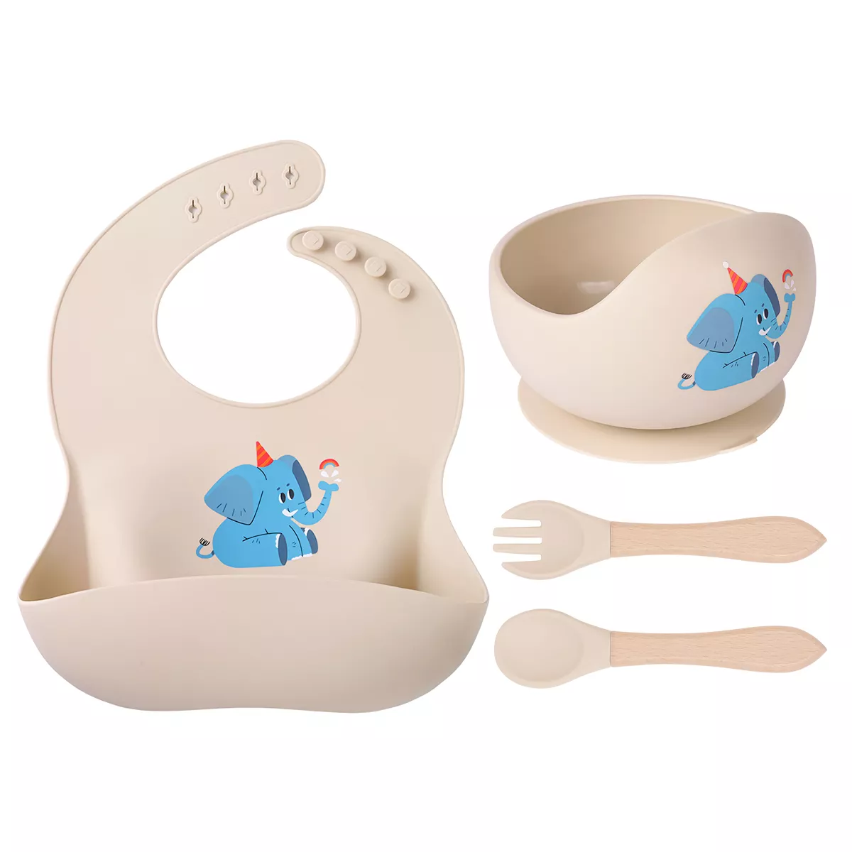 Silicone Baby Feeding Set with Bib, Suction Bowl, Spoon & Fork – 4pcs