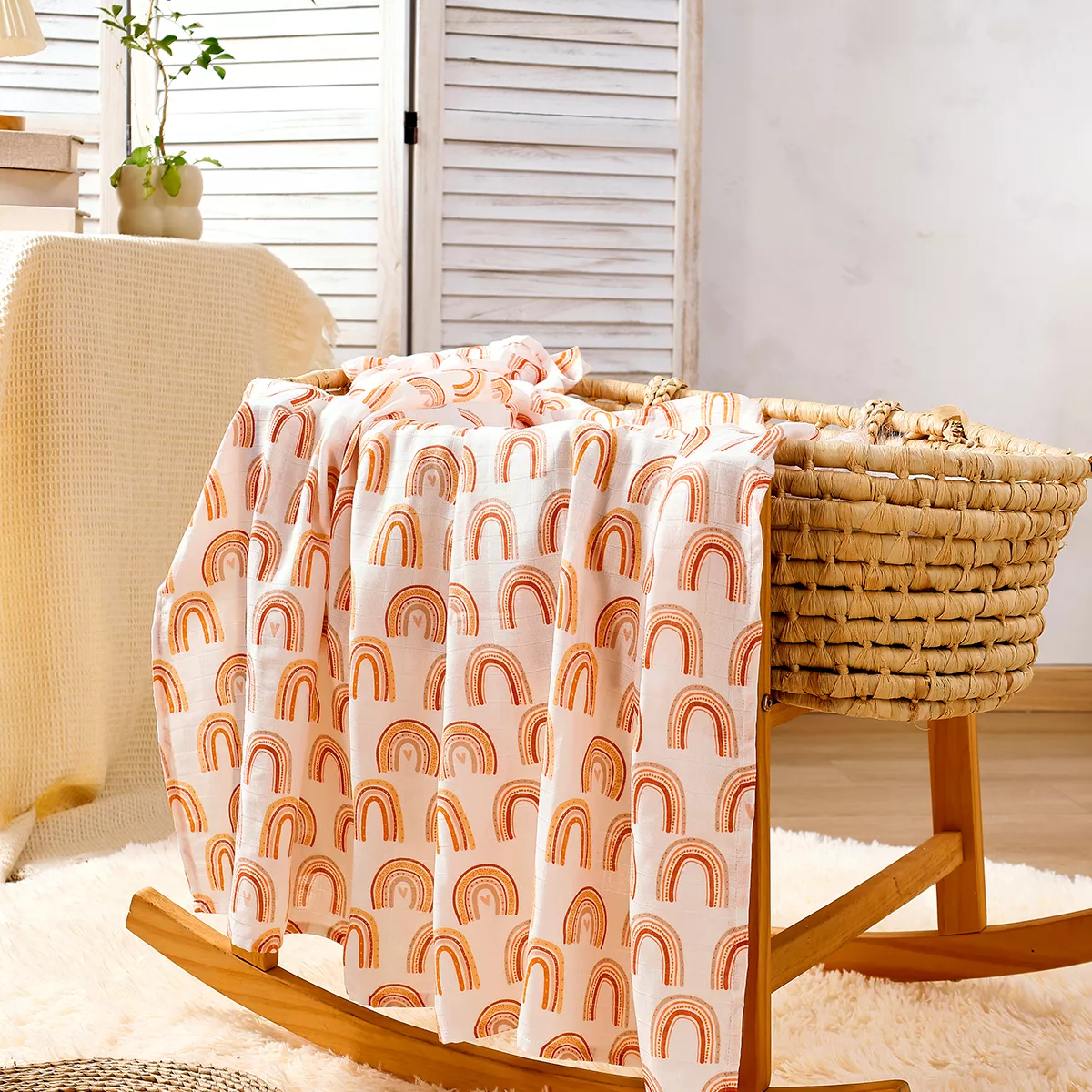 This multi-purpose blanket is perfect for babies from birth up to 3 years old. Measuring generously to wrap your baby securely, the ultra-soft muslin fabric is kind to delicate skin and free from harmful chemicals, giving you peace of mind every time you use it. Its lightweight, breathable texture helps regulate temperature, keeping your baby warm in winter and cool in summer. Plus, the charming printed patterns add a sweet touch to everyday care routines.