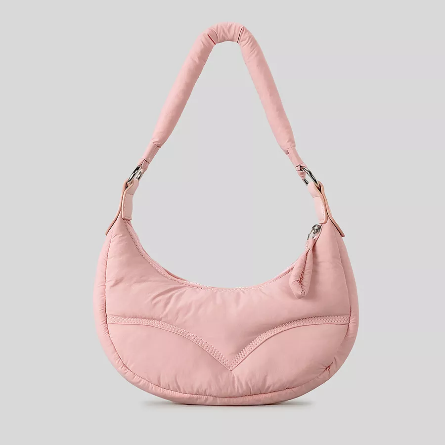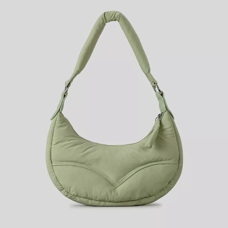 Soft Quilted Nylon Half-Moon Shoulder Bag – Casual Crossbody Tote