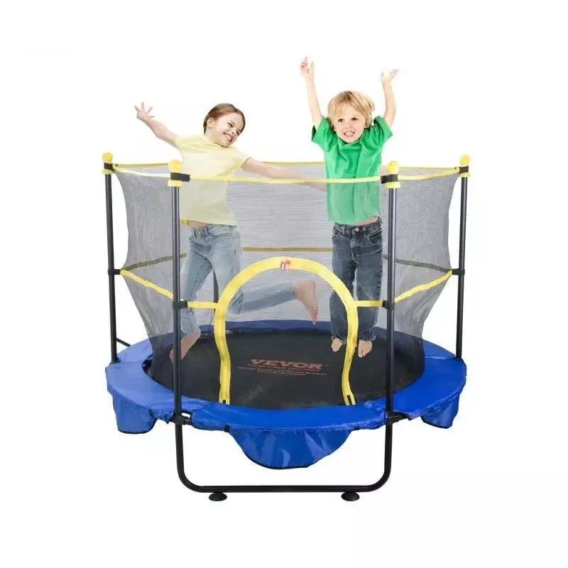 5FT Kids Trampoline with Safety Net, Basketball Hoop & Ocean Balls